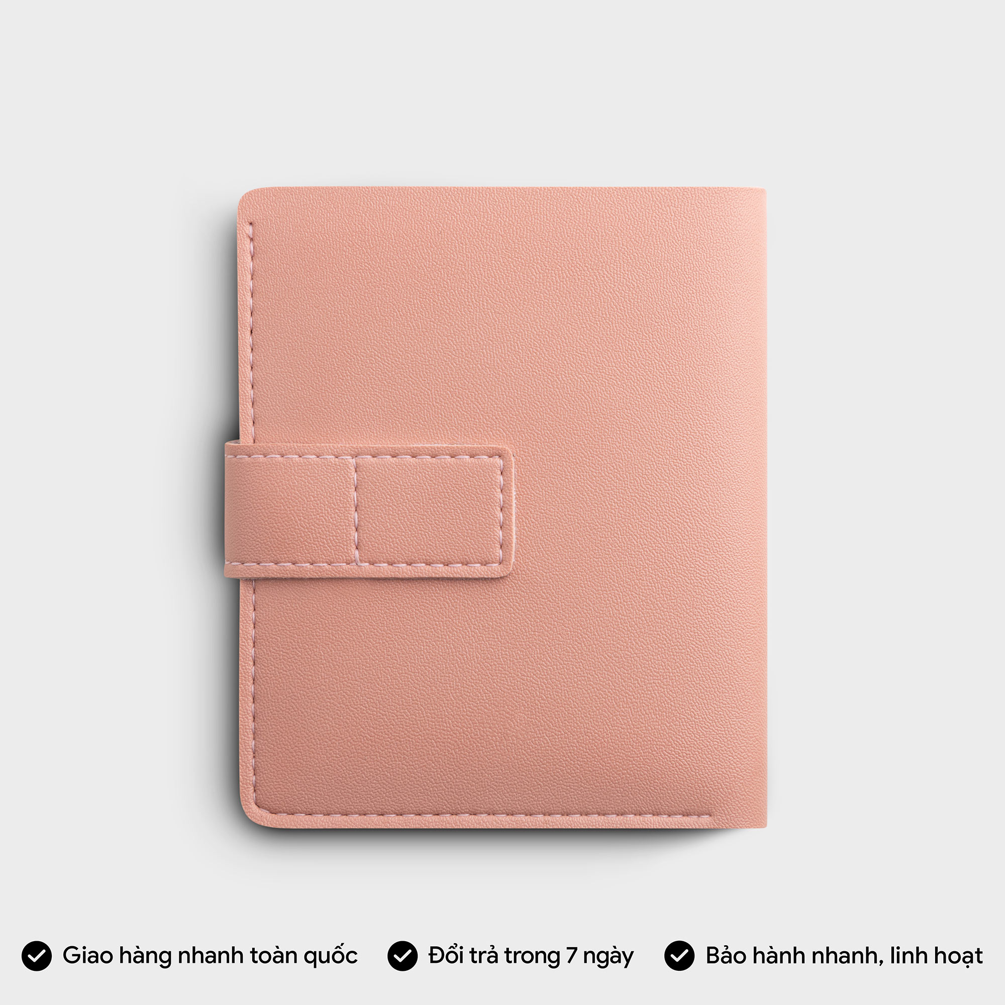 Kiểu da thực vật mềm xốp, cầm nắm dễ chịu, để túi quần sau ko thấy cấn. Nhưng mình cũng gỡ phần dây bấm nút ra cho êm hơn.