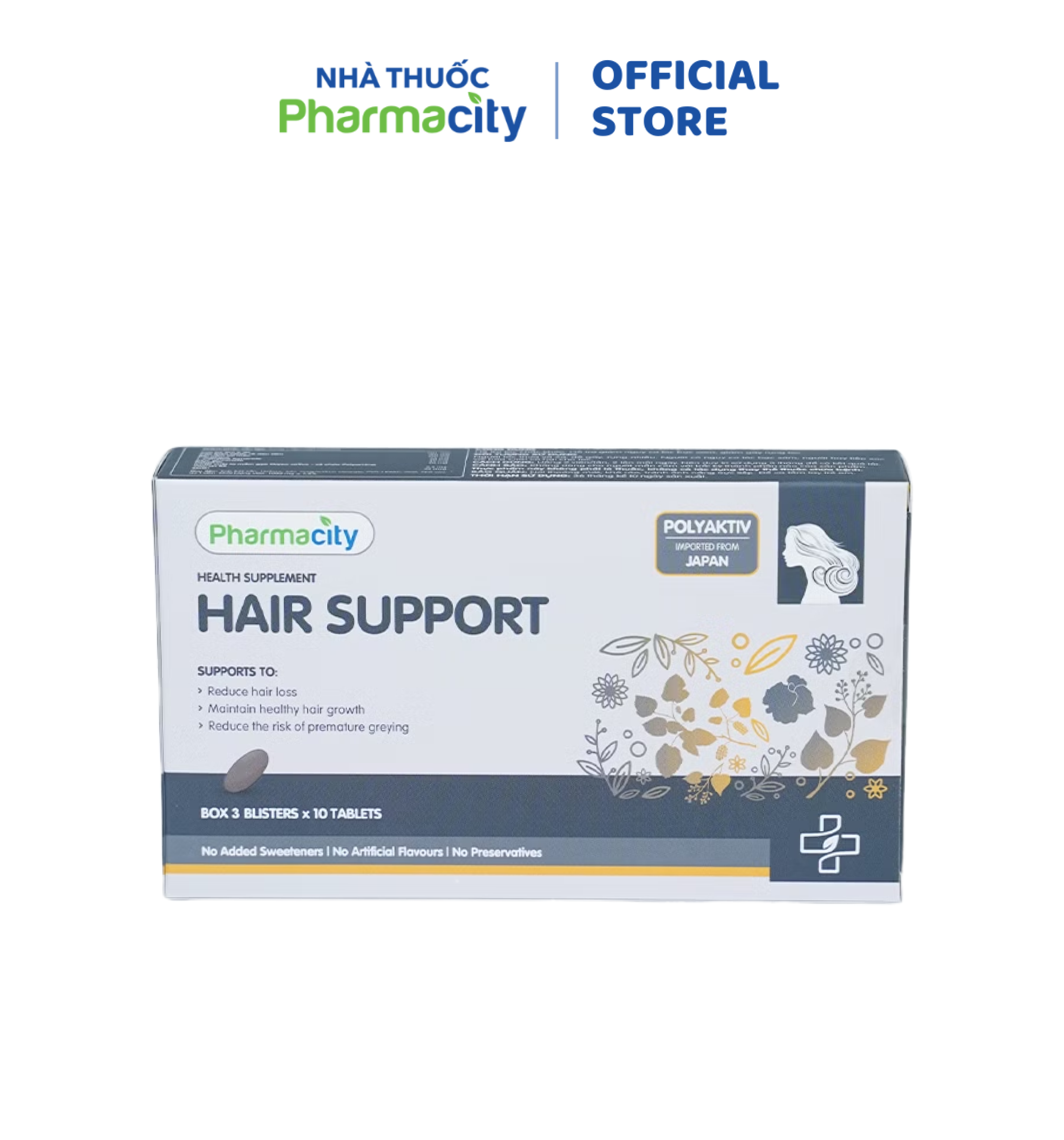 Thông số kỹ thuật Viên hỗ trợ tóc khỏe, giảm rụng tóc, tóc bạc sớm Pharmacity Hair Support (Hộp 3 vỉ x 10 viên)