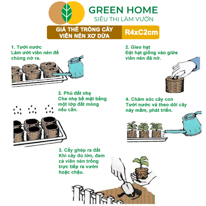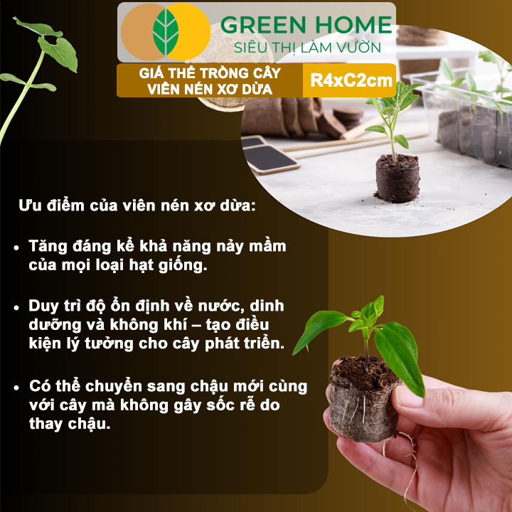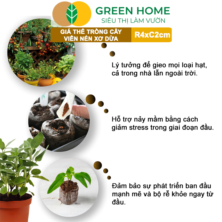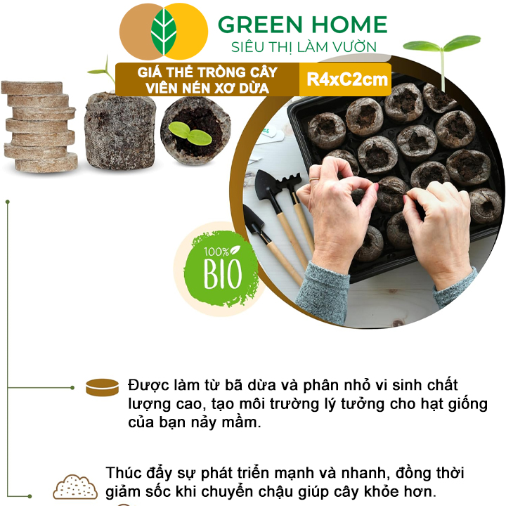 Thông số kỹ thuật Viên Nén Xơ Dừa Greenhome, Ươm Hạt Giống, Ươm Cây Con Tiện Lợi, Đầy Đủ Dinh Dưỡng, Cây Phát Triển Nhanh
