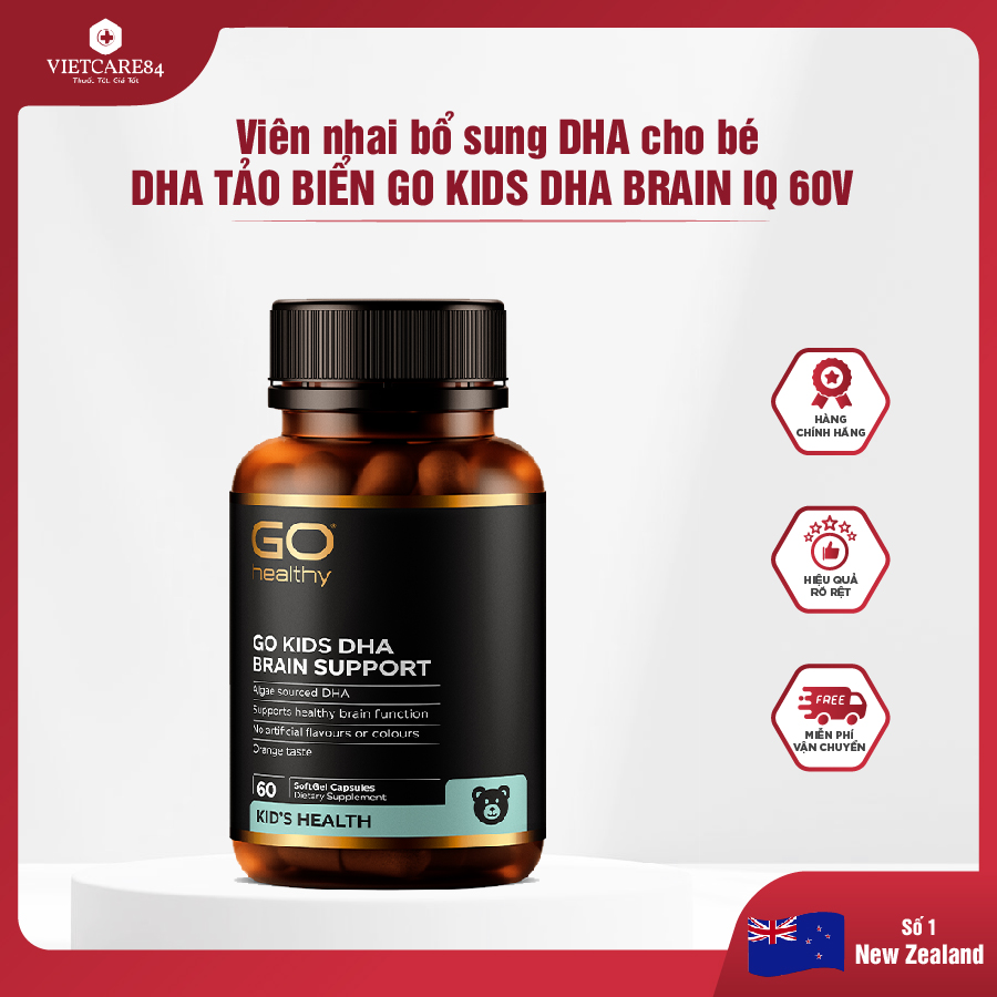 Thông số kỹ thuật Viên Nhai Bổ Sung DHA Cho Bé New Zealand Go Kids DHA Brain IQ 60 Viên | Phát Triển Não Bộ - Thị Giác - Nhập Khẩu Chính Hãng