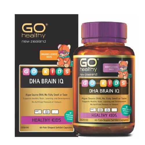 GO Kids DHA Brain IQ cung cấp nguồn omega DHA từ tảo tự nhiên, với công thức bào chế riêng biệt bổ sung DHA cho bé, giúp tăng cường sức khỏe não bộ, hỗ trợ phát triển thị giác. GO Kids DHA Brain IQ có hương vị cam ngon tự nhiên, đóng gói dưới dạng viên nang hình cá vui nhộn, trẻ có thể nhai hoặc nhỏ vào miệng.