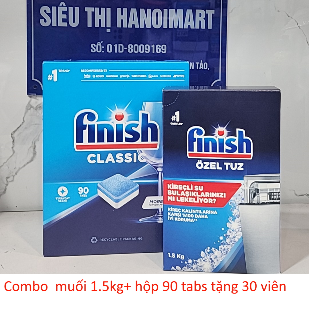 Combo: Viên rửa bát Finish 90 viên + Muối rửa bát Finish 1.5kg tặng thêm