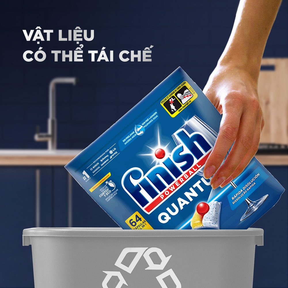 Viên Rửa Chén Bát Finish Powerball Quantum Powerful Clean & Shine 64 viên