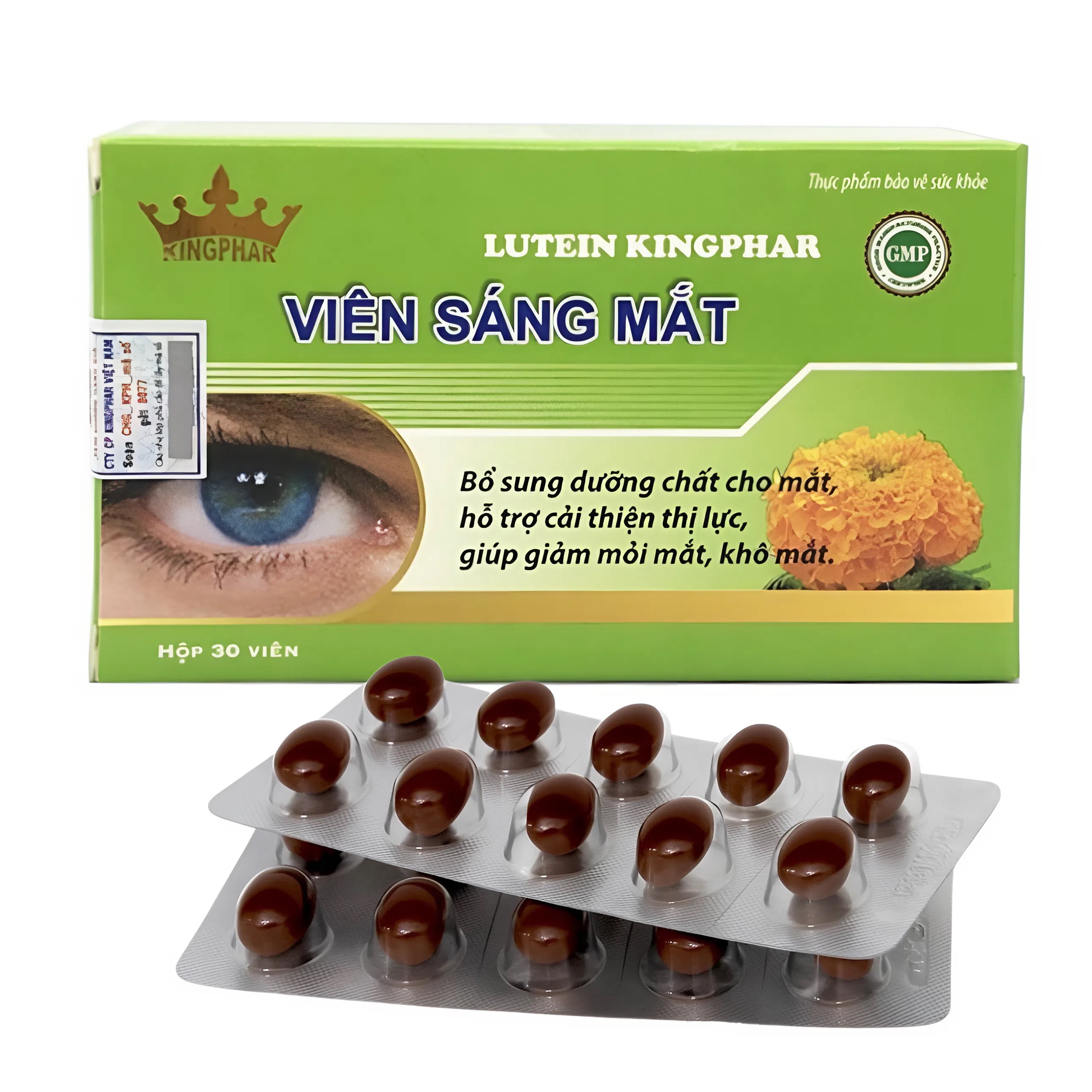 Viên Sáng Mắt Lutein Kingphar bổ sung Lutein, Vitamin A, E tự nhiên giúp hạn chế quá trình lão hóa, chống thoái hóa điểm vàng, tăng cường thị lực.