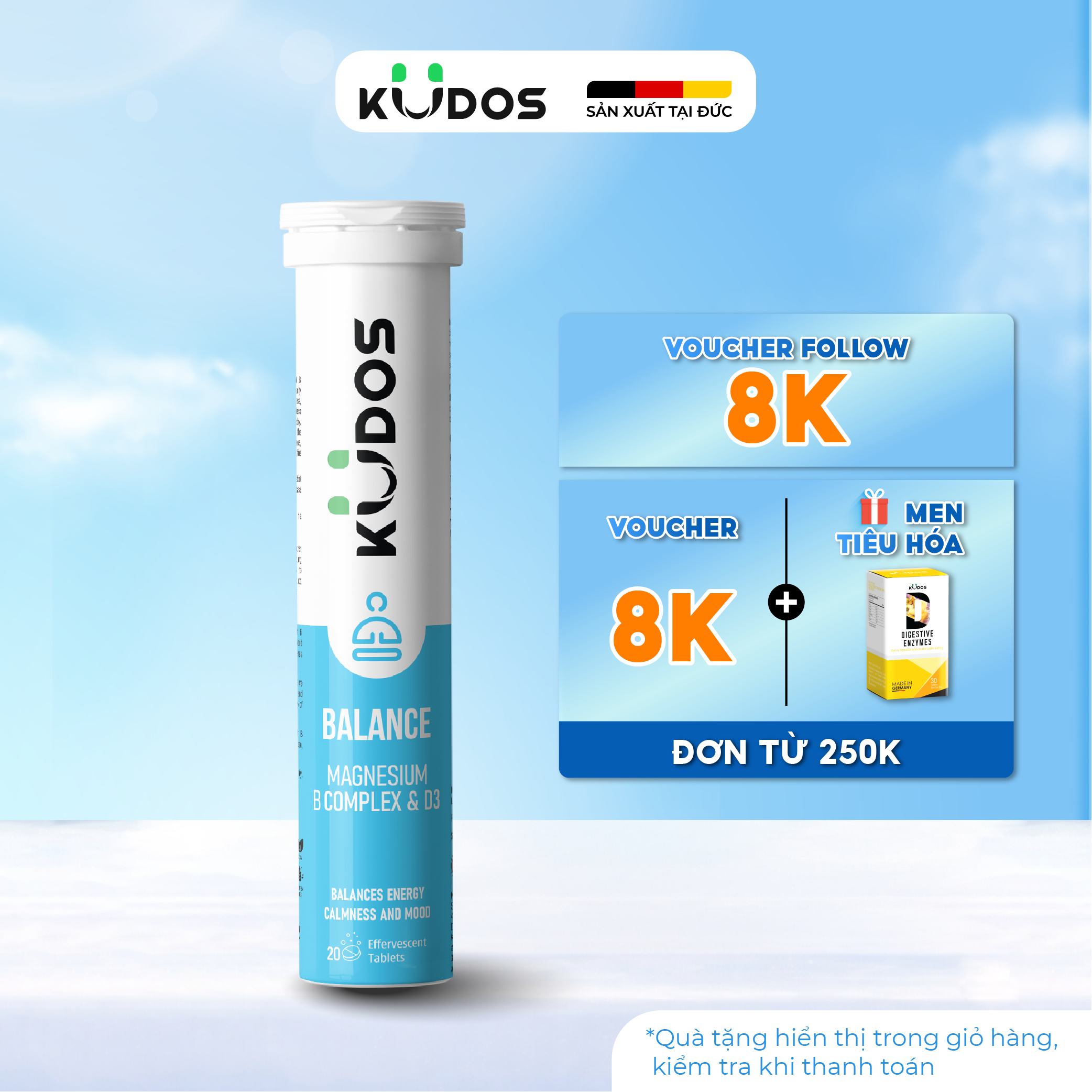 Thông số kỹ thuật Thực phẩm bảo vệ sức khỏe KUDOS BALANCE MAGNESIUM WITH B VITAMIN COMPLEX & D3 (20 viên/tuýp)
