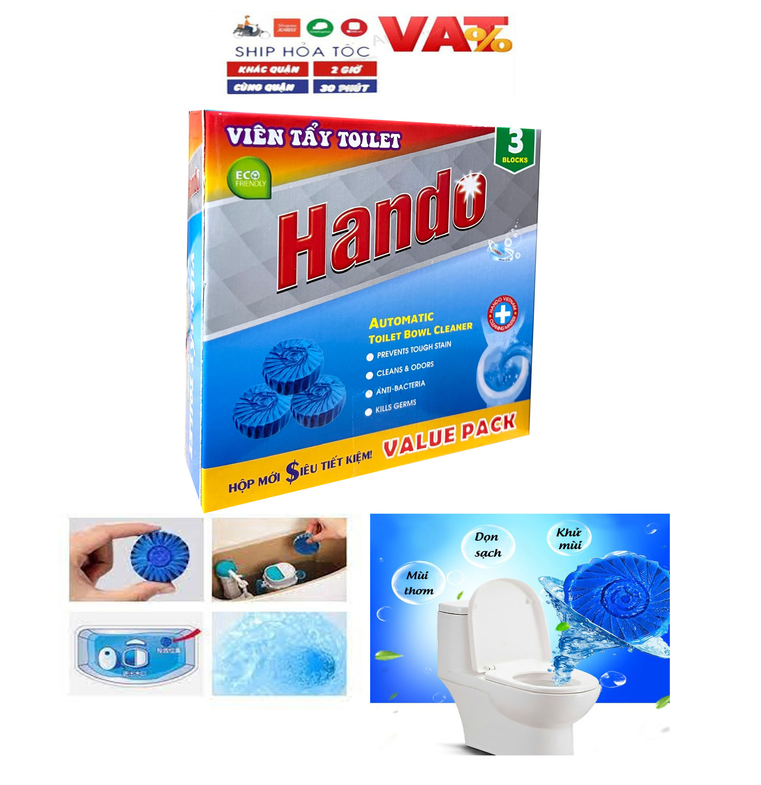 Tên sản phẩm : Viên tẩy sạch và làm thơm xanh Hando 3 viên Value Pack