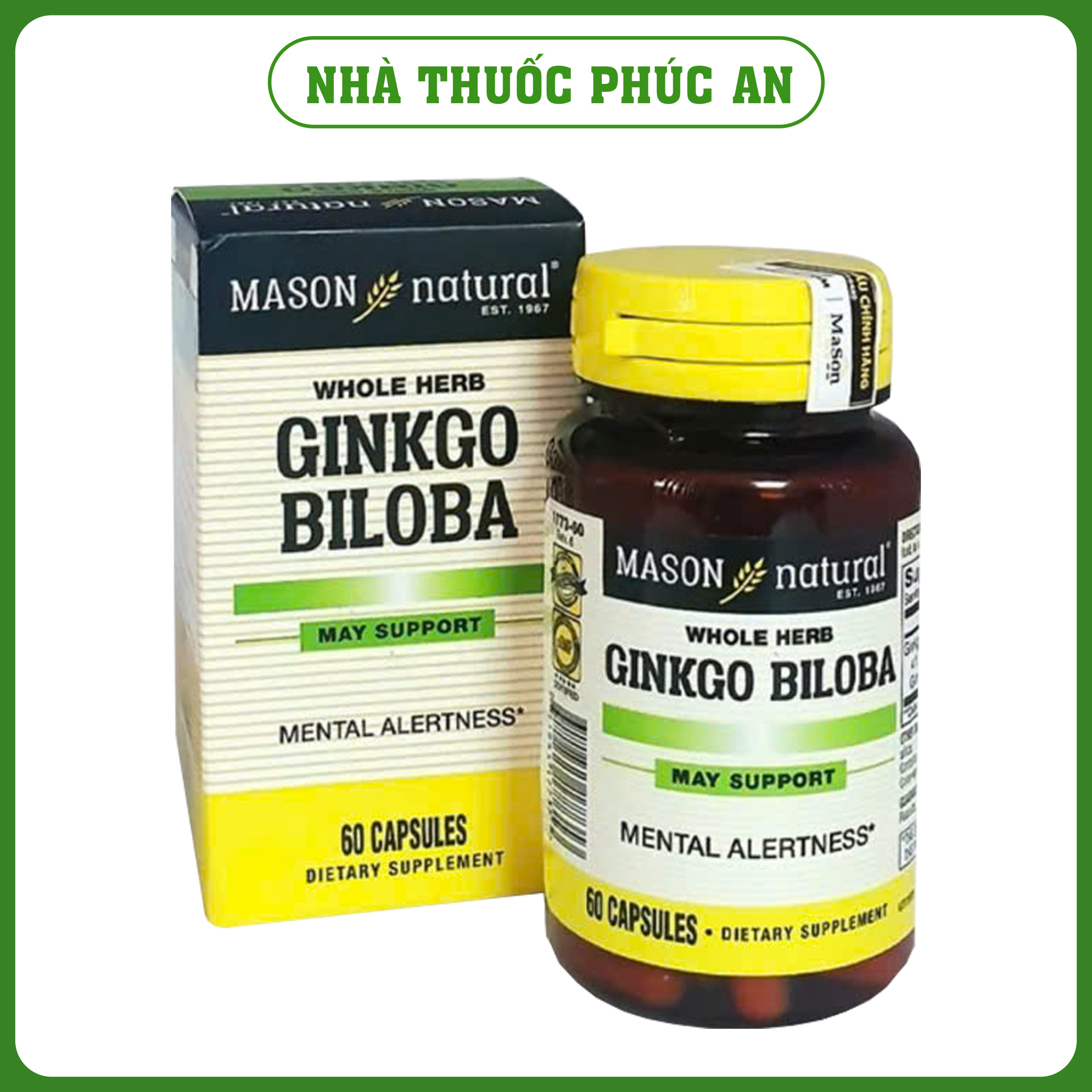 Viên uống bổ não hỗ trợ tăng tuần hoàn não trí nhớ Mason Natural Ginkgo Biloba Mỹ 60 viên