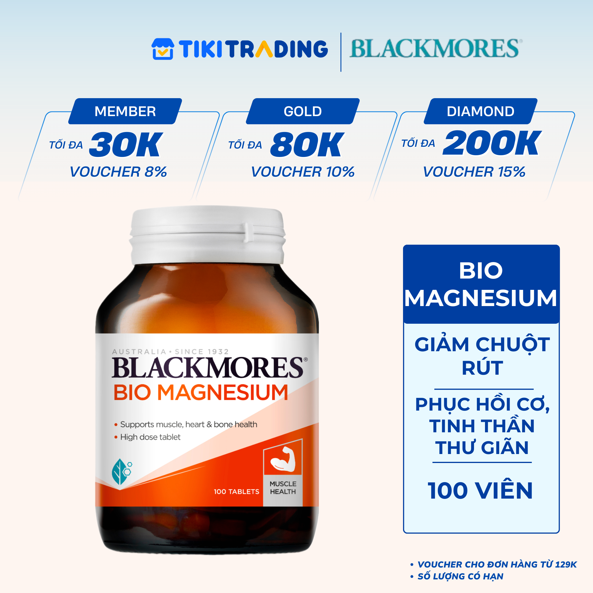 Thông số kỹ thuật Viên Uống Bổ Sung Magie Hỗ Trợ Cơ Bắp Ngăn Ngừa Chuột Rút Blackmores Bio Magnesium Lọ 100 Viên