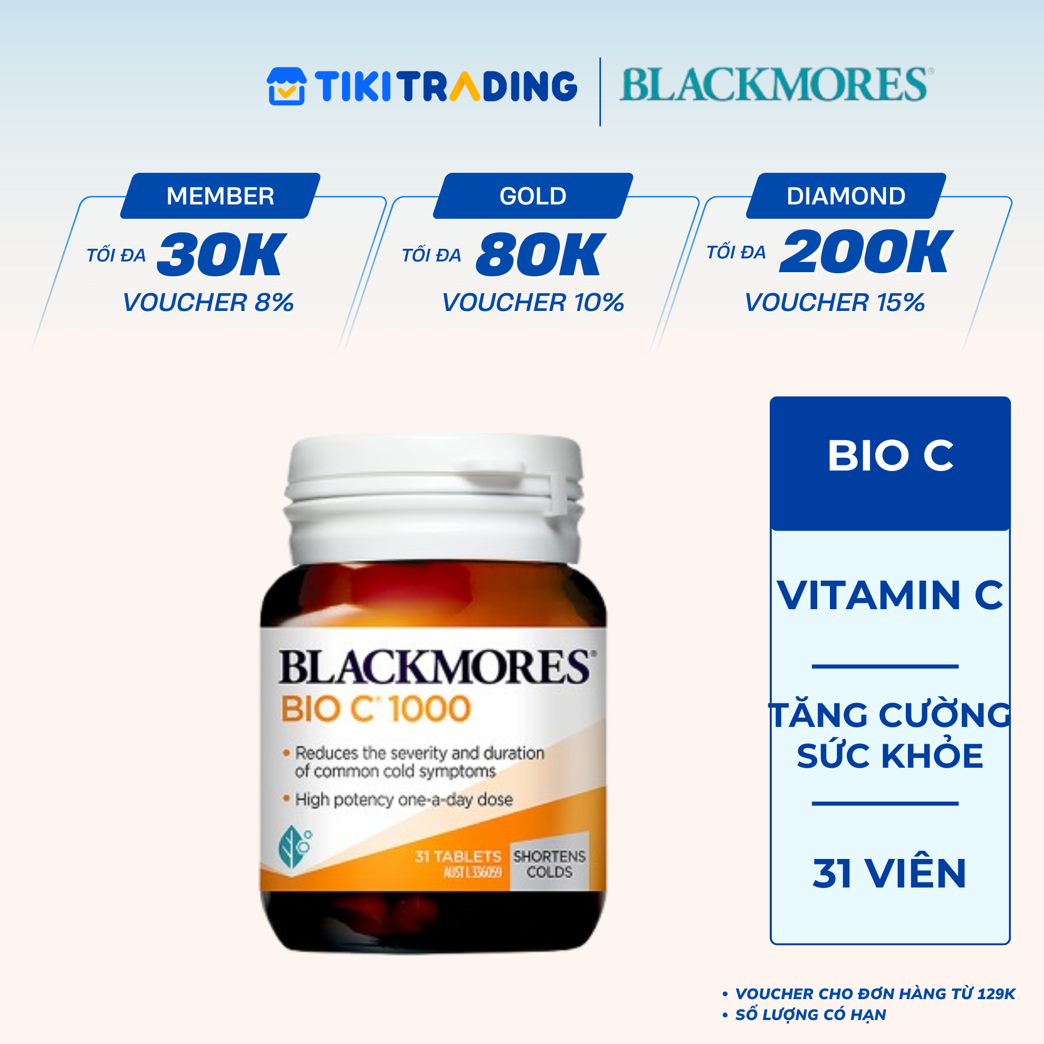 Viên Uống Blackmores Bổ Sung Vitamin C Bio C 1000mg là giải pháp lý tưởng bổ sung vitamin C hàm lượng cao, giúp bảo vệ sức khỏe. Sản phẩm có công thức muối đệm ascorbate tạo sự dịu nhẹ với dạ dày và chiết xuất citrus bioflavonoid giúp tăng cường hấp thu vitamin C. Không chỉ hỗ trợ hệ miễn dịch, viên uống còn hỗ trợ giảm nhẹ các triệu chứng cảm cúm, chống lại các tổn thương do gốc tự do và hỗ trợ mau liền vết thương….