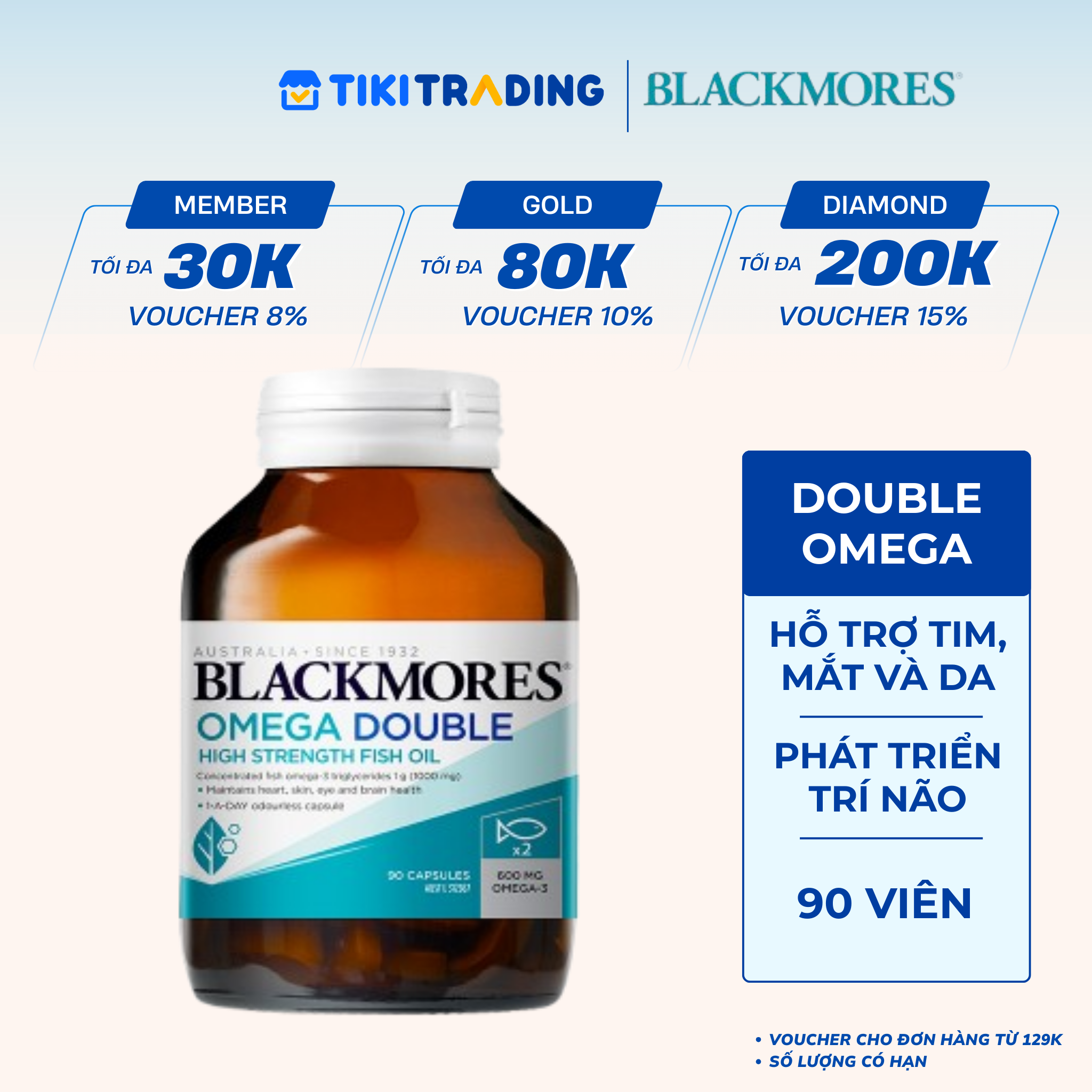 Thông số kỹ thuật Viên Uống Dầu Cá Bổ Sung Omega Hỗ Trợ Cho Tim, Mắt và Da Blackmores Double Omega High Strength Lọ 90 Viên