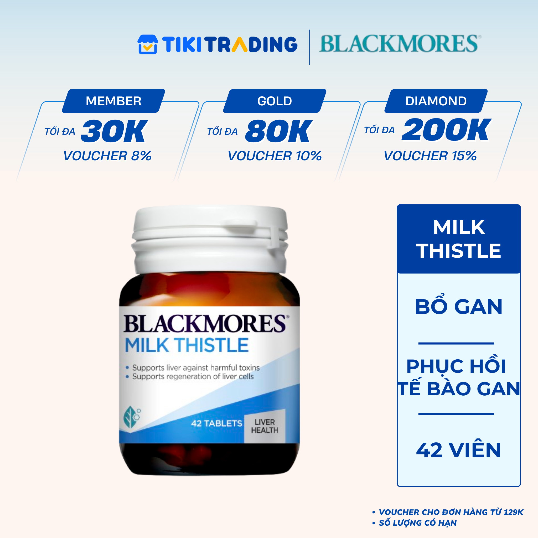 Milk Thistle chứa tinh chất cây kế sữa có tác dụng hỗ trợ bảo vệ gan trước các chất độc hại, hỗ trợ quá trình phục hồi tế bào gan. Ngoài ra, các thành phần có trong Blackmores Milk Thistle còn hoạt động như một chất giải độc các hóa chất tổng hợp khác như acetaminophen đến rượu hoặc kim loại nặng.