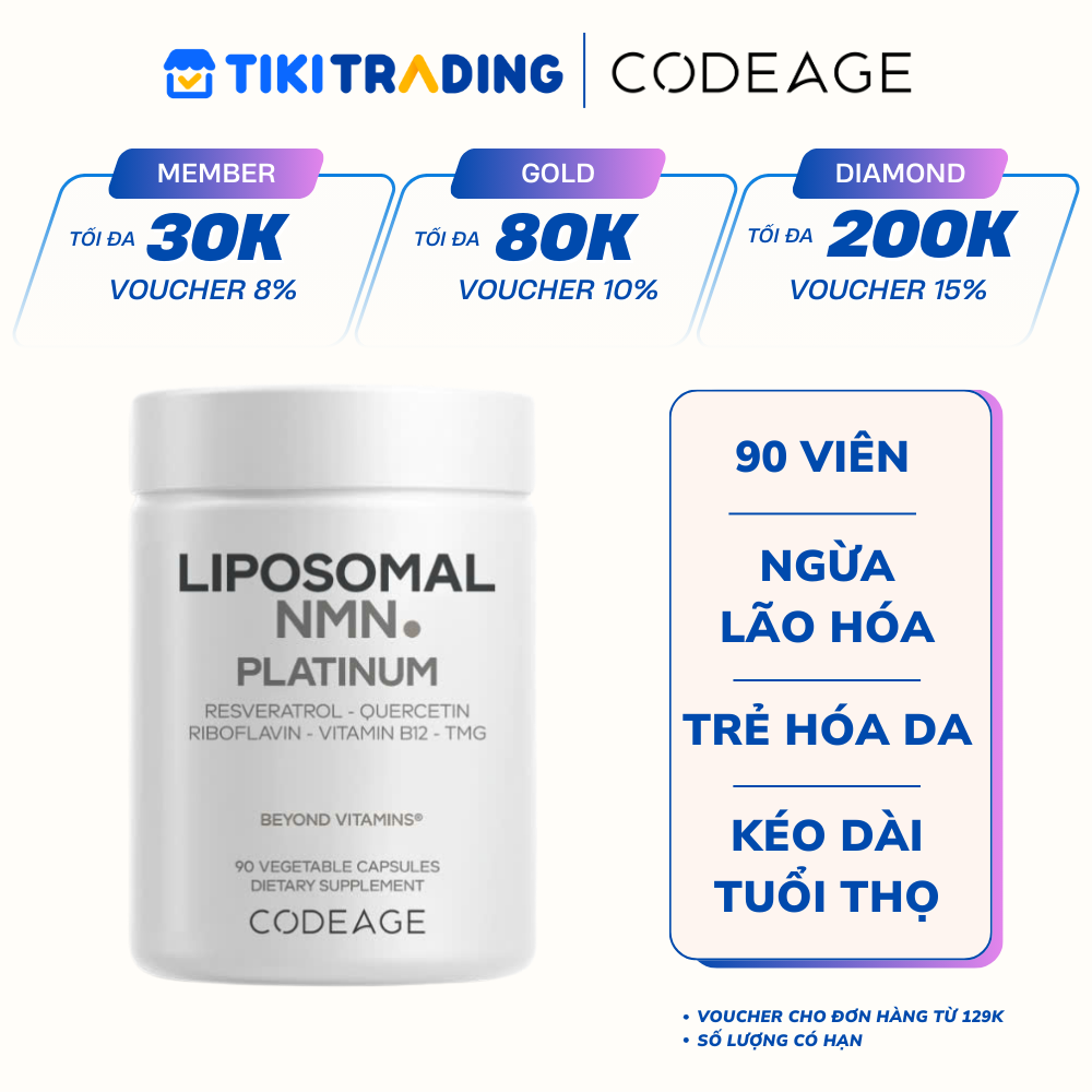Thông số kỹ thuật Viên uống ngăn ngừa lão hóa kéo dài tuổi thọ và trẻ hóa làn da Codeage Liposomal NMN - 90 Viên