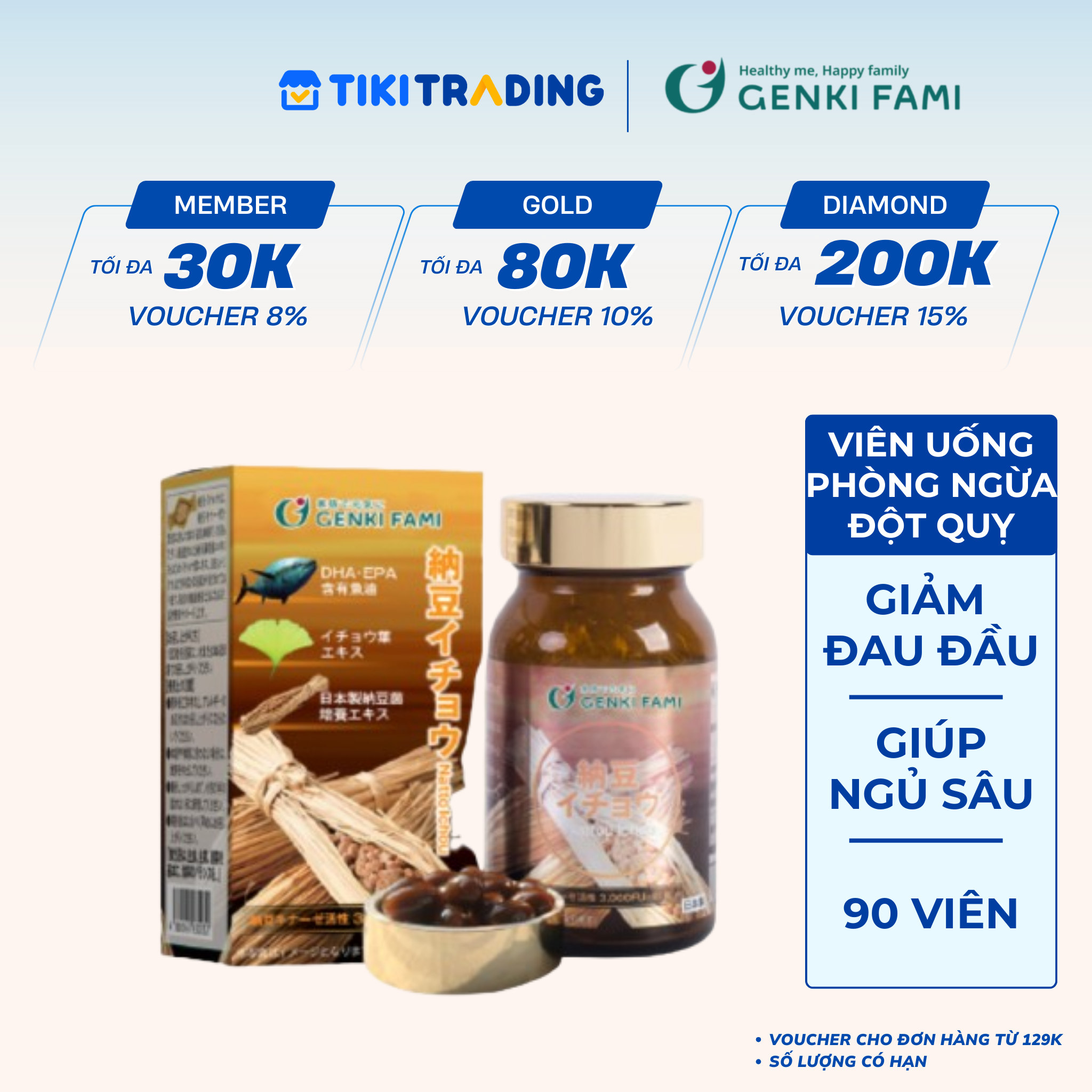 Viên uống hỗ trợ điều trị tai biến biến Natto Ichou 3000FU Genki Fami với thành phần từ Nattokinase đạt tiêu chuẩn chất lượng và hàm lường chuẩn trong liều dùng (3000FU/ngày), giúp đạt hiệu quả tối đa trong việc ngăn ngừa và hỗ trợ điều trị tai biến mạch máu não. Sản phẩm được Hiệp hội Nattokinase Nhật Bản chứng nhận về chất lượng và được Bộ y tế Việt Nam cấp giấy phép lưu hành sử dụng.