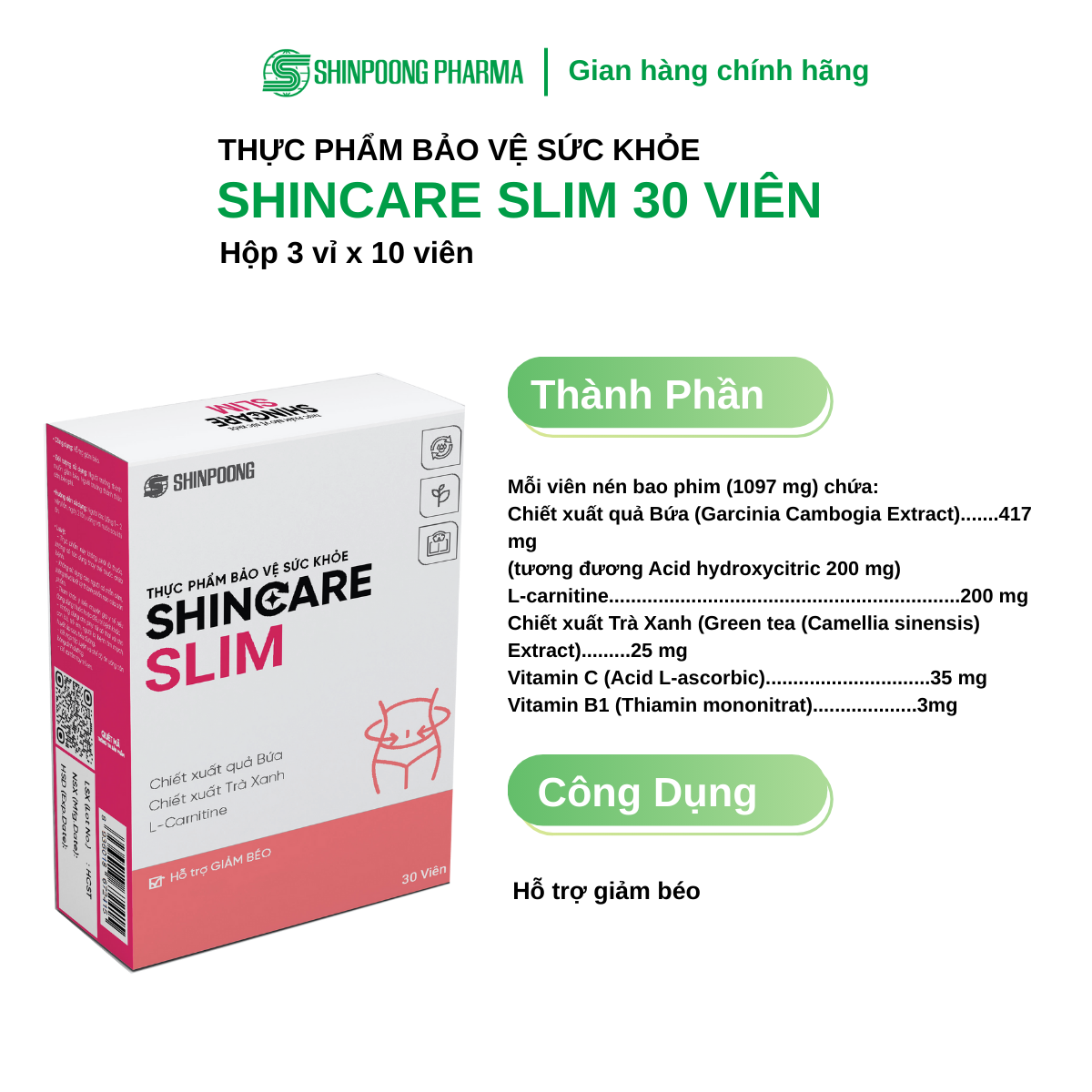 Thông số kỹ thuật [Hộp 30 Viên] Viên uống Shincare Slim - Hỗ trợ giảm hấp thu chất béo, kiểm soát cân nặng, thon dáng - SHINPOONG PHARMA