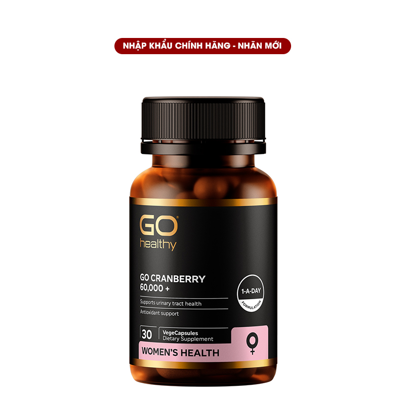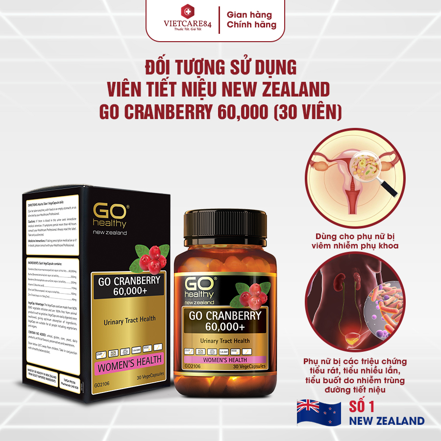 GO Cranberry 60,000+ nhập khẩu chính hãng từ New Zealand, dành riêng cho phụ nữ bị viêm đường tiết niệu và viêm nhiễm phụ khoa.