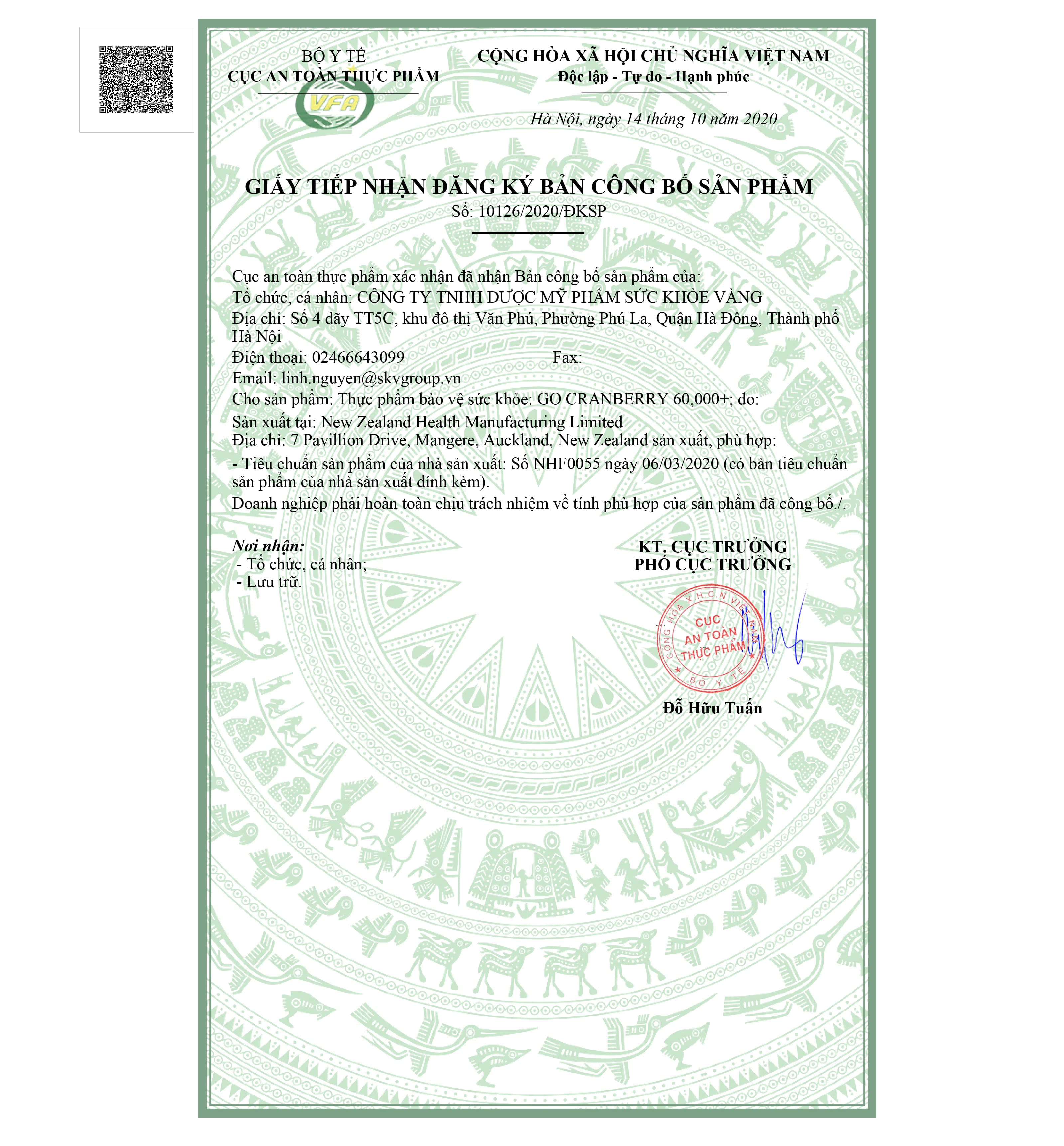 THỰC PHẨM BẢO VỆ SỨC KHỎE GO CRANBERRY 60,000+