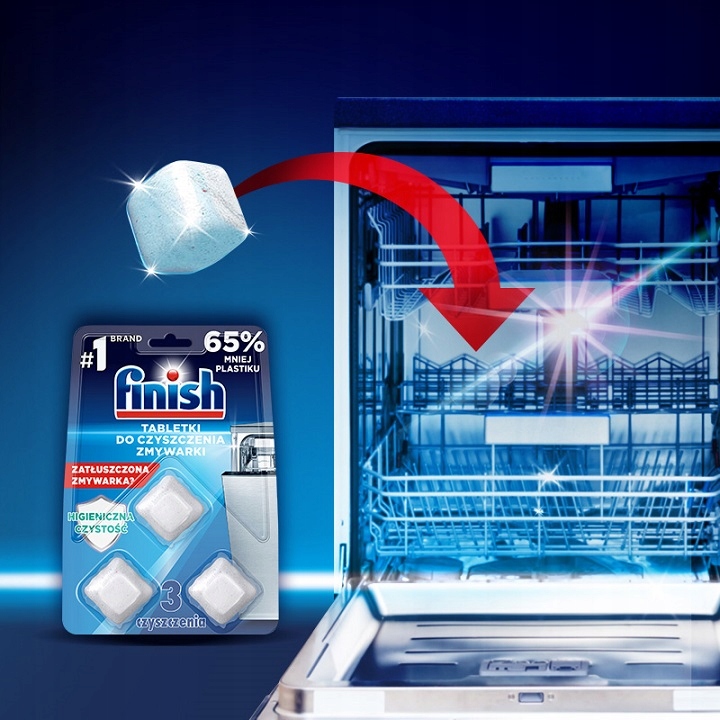 Viên vệ sinh máy rửa chén của thương hiệu Finish có xuất xứ từ Châu Âu. Vì thế nó đảm bảo tiêu chuẩn chất lượng, an toàn cho người sử dụng, chắc chắn sẽ giúp bạn vệ sinh máy móc hiệu quả. Dựa vào công thức làm sạch kép, chất bẩn, dầu mỡ sẽ được hòa tan và đánh bay ngay lập tức ngay cả ở nơi khó tiếp cận như: bộ lọc, khoang máy, đường ống, cánh tay phun…
