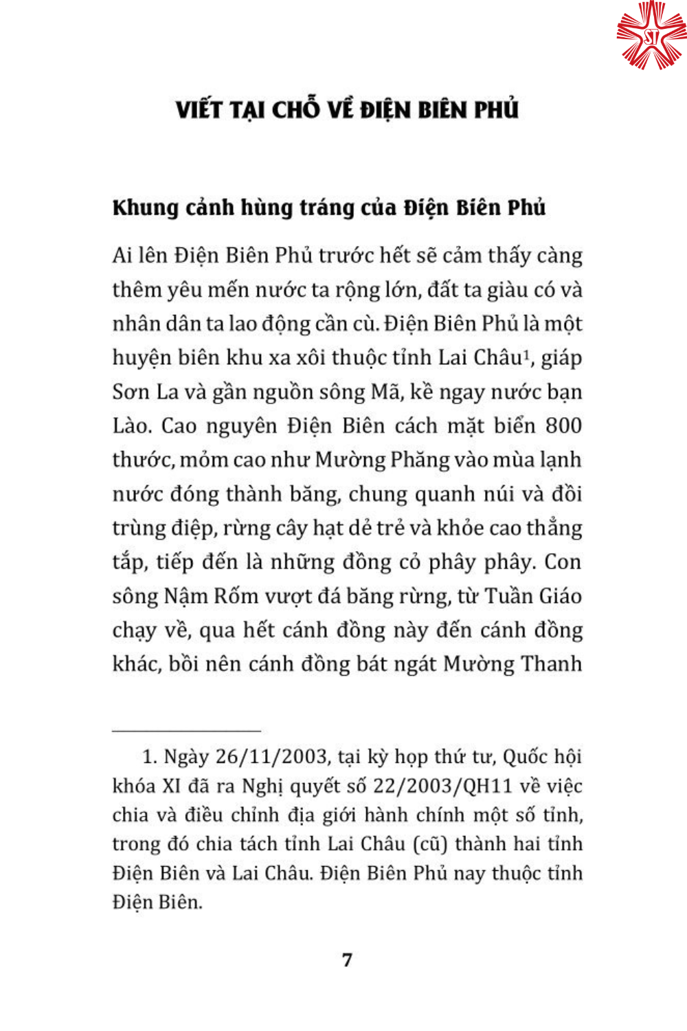 Cuốn sách là một nguồn tư liệu quý giá với những góc nhìn khách quan, thời sự về 56 ngày đêm làm nên Điện Biên Phủ “chấn động địa cầu”, đồng thời là những hồi ức, cảm nhận của tác giả về cuộc chiến và cuộc sống tại vùng Tây Bắc sau hòa bình lập lại.