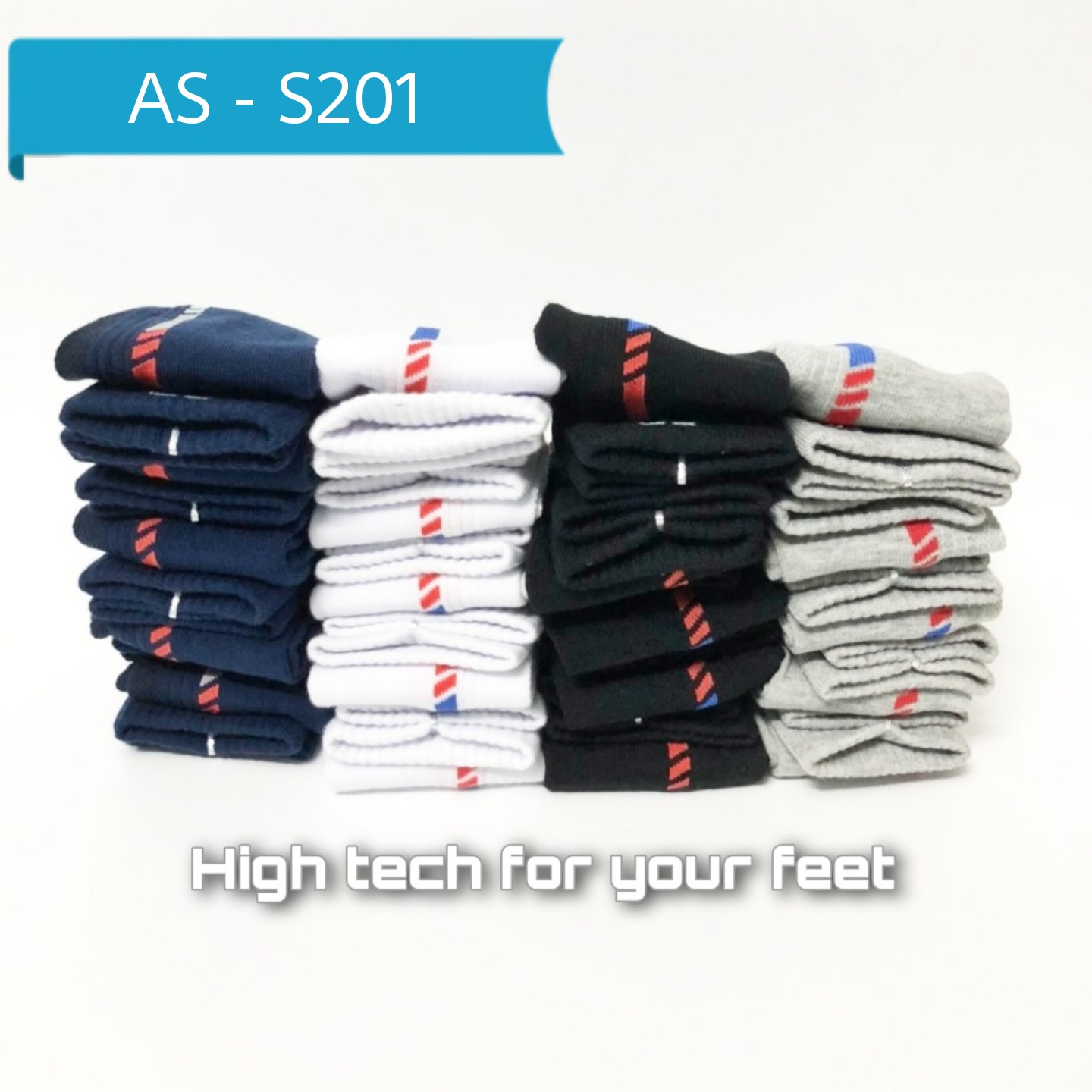 Thông số kỹ thuật Vớ Tất Thể Thao Cổ Trung Cotton Cao Cấp AS-S201. Dày dặn, mềm mại, kháng khuẩn khử mùi, không hôi chân. 4 màu: Trắng, Đen, Xanh, Xám