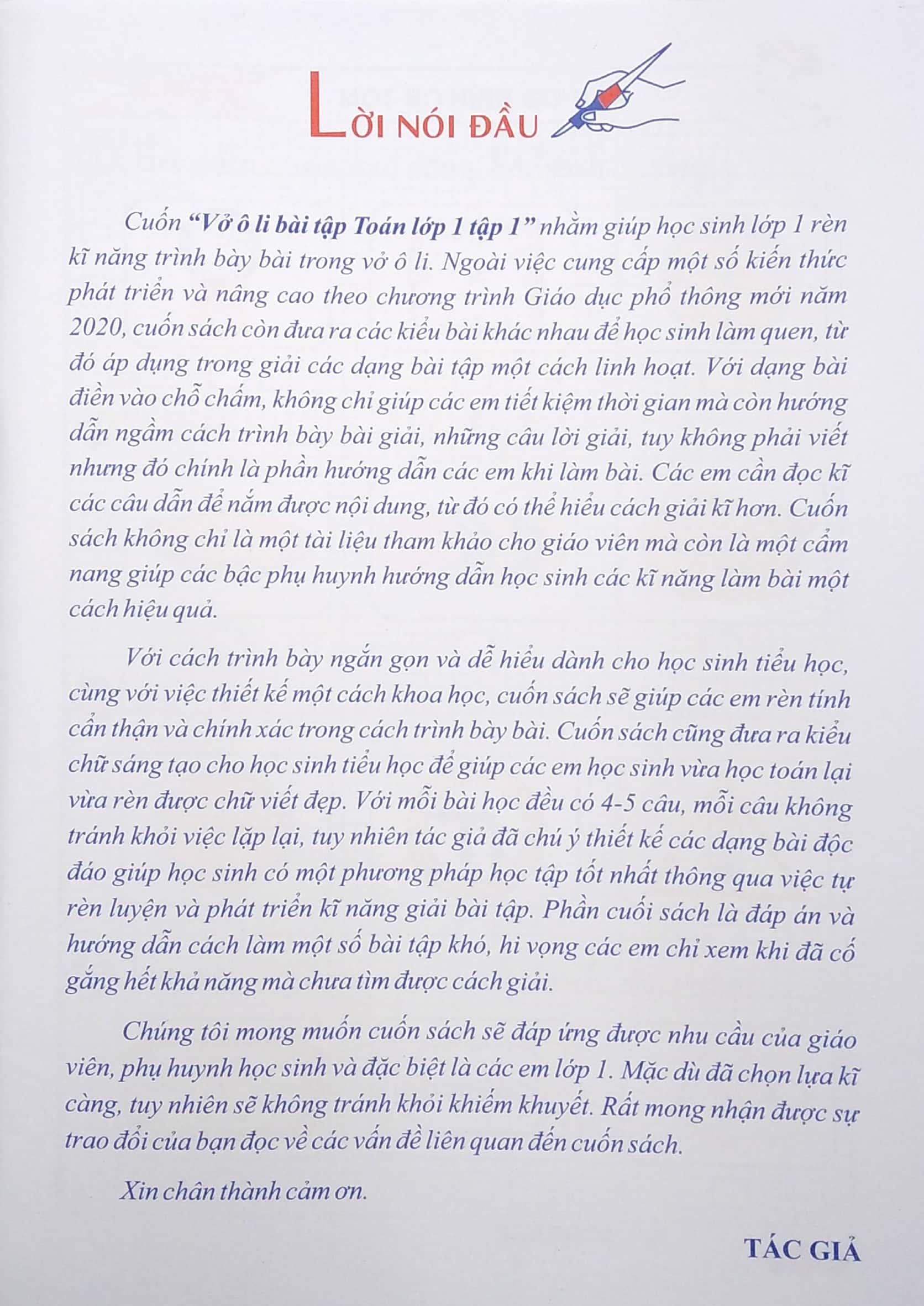 Thông số kỹ thuật Vở Ô Li Bài Tập Toán Lớp 1 - Tập 1
