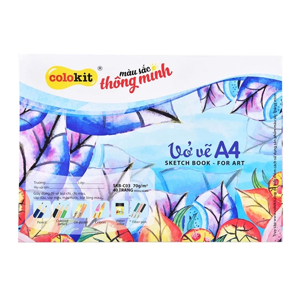 Vở Vẽ A4 Colokit SKB-C03 là loại vở hỗ trợ vẽ mỹ thuật với thiết kế giấy chuyên dụng, hỗ trợ vẽ được cho nhiều loại bút màu, sáp màu như các loại: bút chì, chì màu, sáp dầu, sáp màu, mùa nước, bút lông mà
