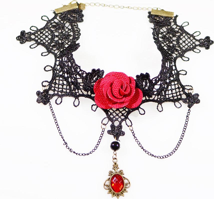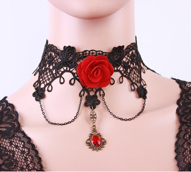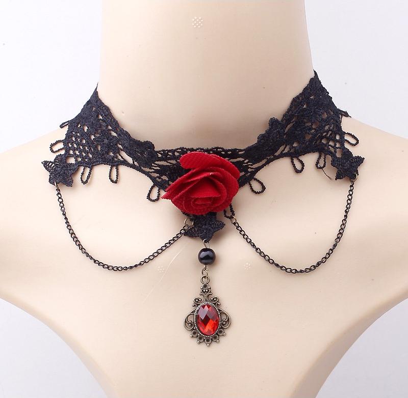 Vòng cổ choker đen hoa hồng đỏ nổi bật dạ tiệc