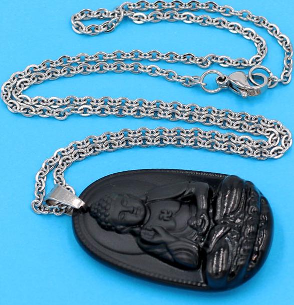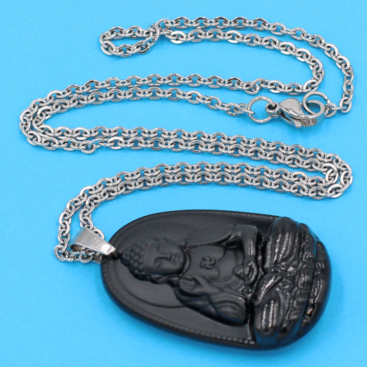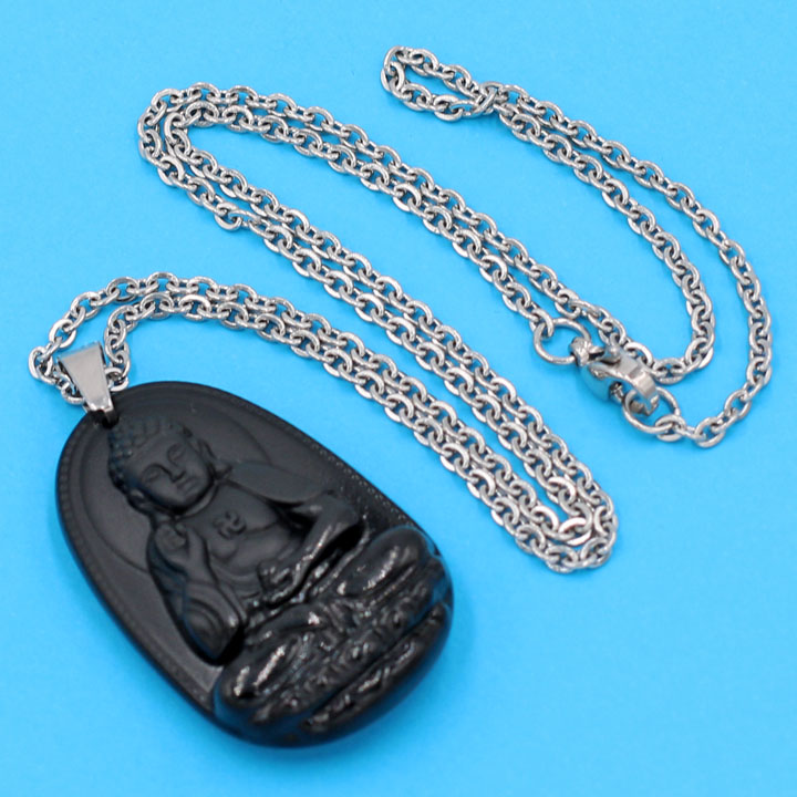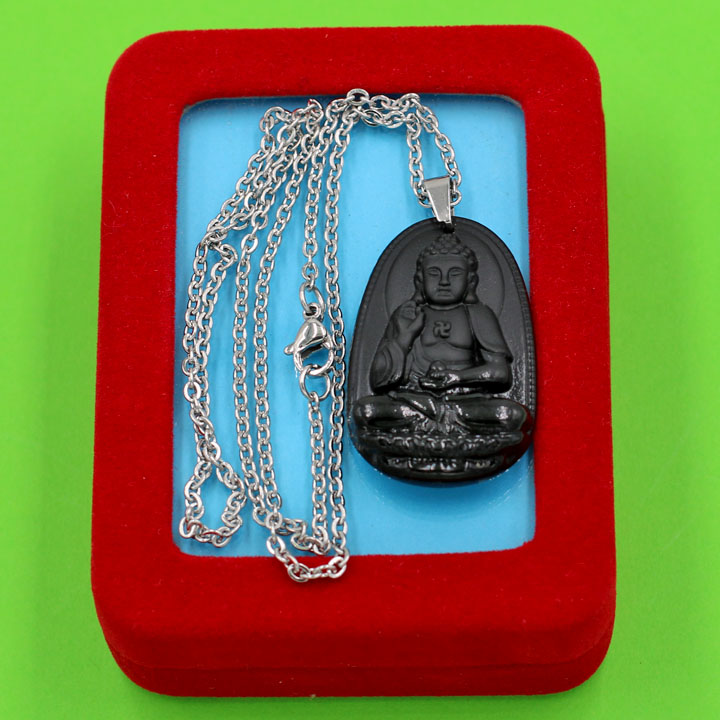 Thông số kỹ thuật Vòng cổ mặt Phật A Di Đà - thạch anh đen 3.6cm DITTEB7 - dây inox bạc - kèm hộp nhung - tuổi Tuất, Hợi