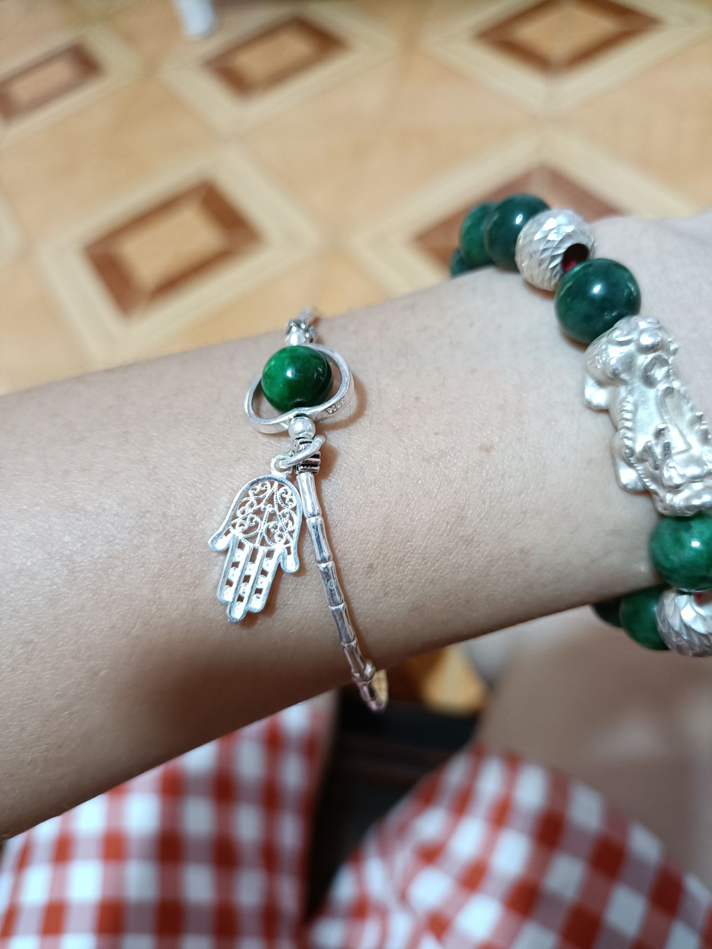 - Đeo Vòng Tay Bạc 1 Hạt Đá Cẩm Thạch Phối Charm Bàn Tay Hamsa Bạc trên người tốt cho vận khí, tốt cho sức khỏe và tiền tài.
