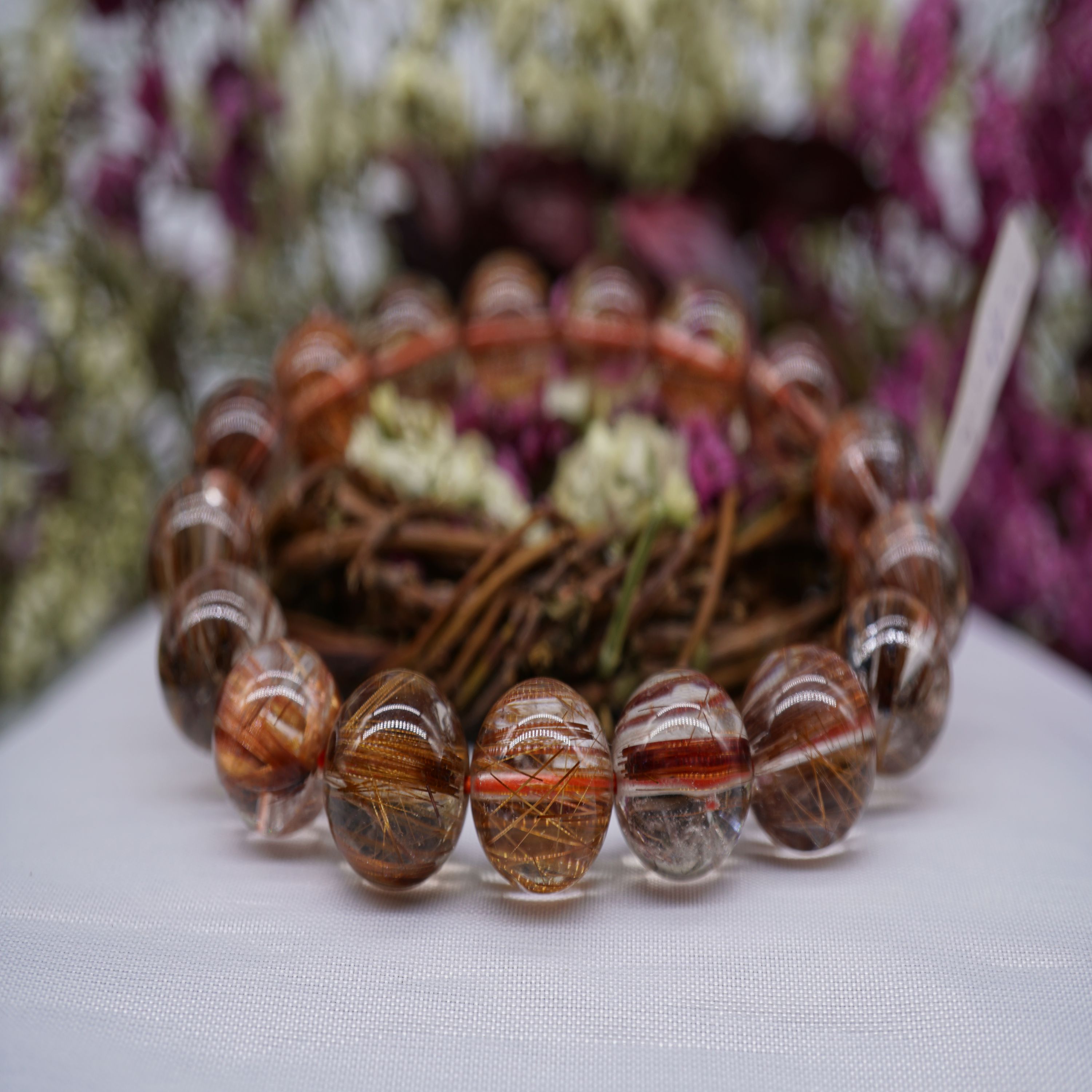 Thông số kỹ thuật Vòng tay đá Thạch Anh Tóc Đỏ Nâu VIP cao cấp, Vòng tay đá Thạch Anh thiên nhiên Tóc Đỏ Nâu 8ly