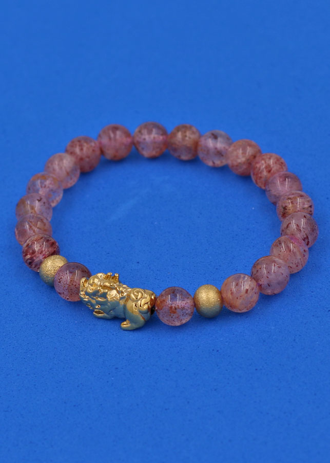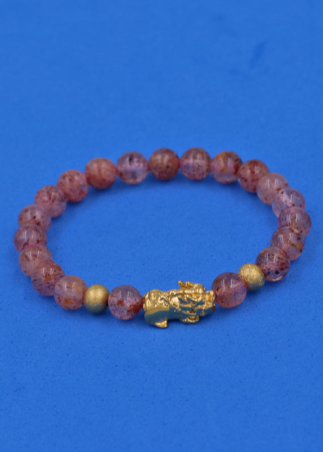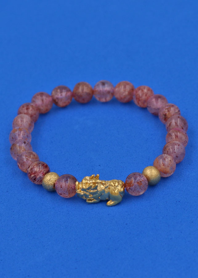 Thông số kỹ thuật Vòng tay Thạch Anh Dâu Tây 6 ly cẩn Tỳ Hưu inox vàng VTADTTHHBV6 - hợp mệnh Hỏa, mệnh Thổ