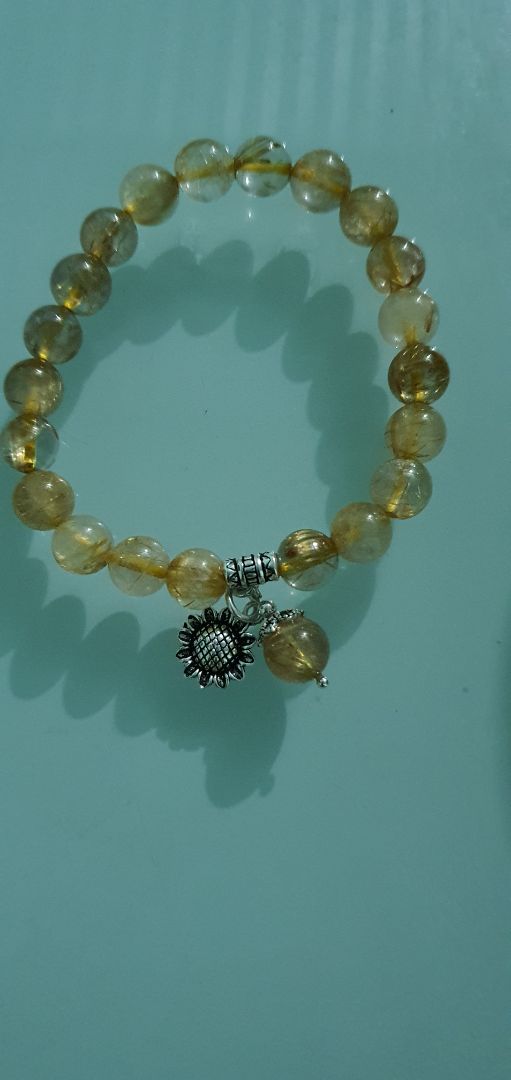 VÒNG TAY ĐÁ THẠCH ANH TÓC VÀNG MIX HOA HƯỚNG DƯƠNG BẠC: