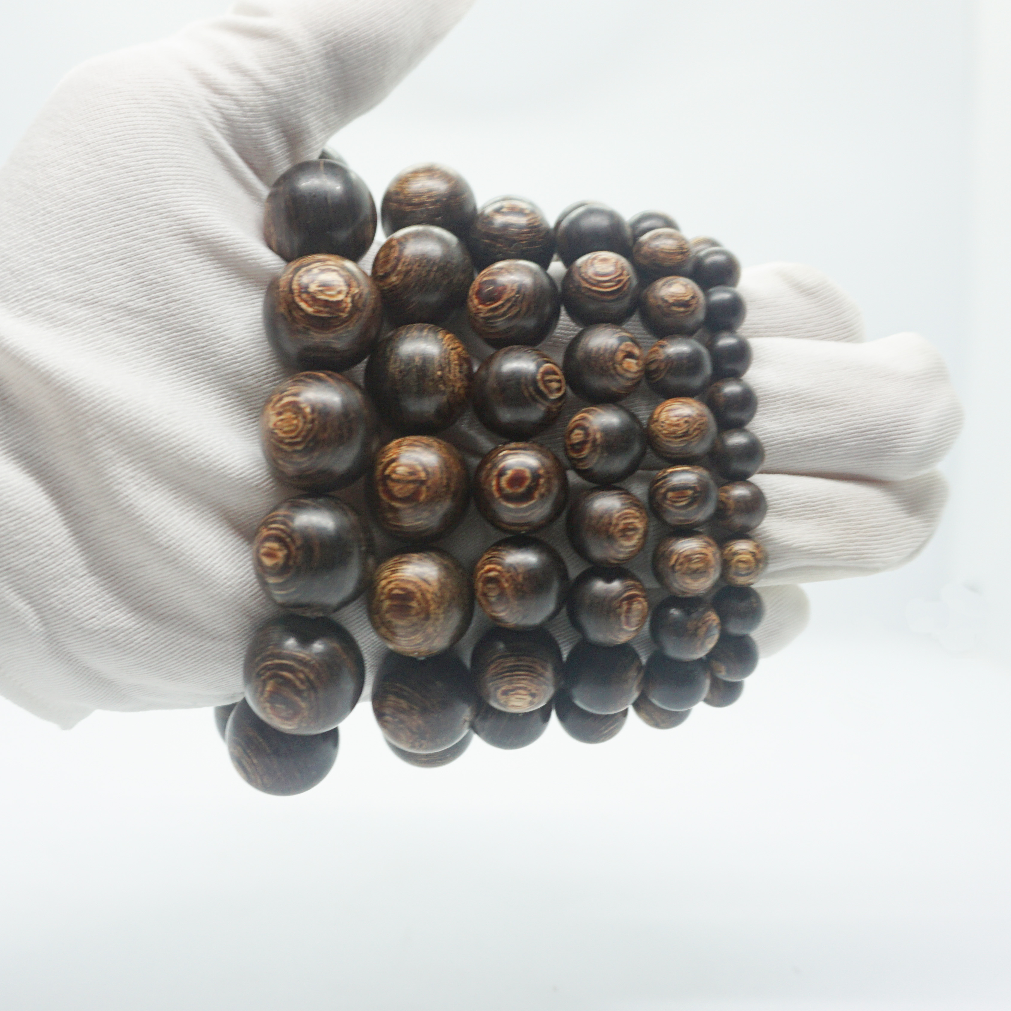 Hạt trầm tròn, đều, màu trầm đẹp, vân gỗ rõ ràng có tính thẩm mỹ cao.