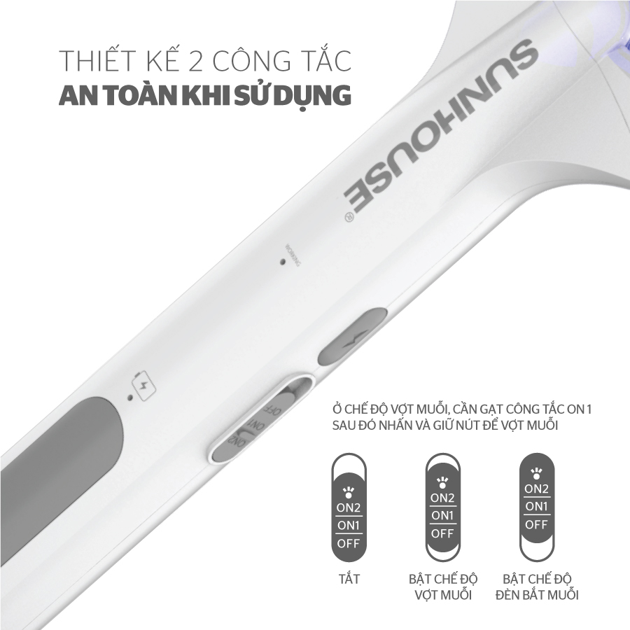 Vợt muỗi thông minh SUNHOUSE 3IN1 SHE-Pro11.W là sản phẩm không thể thiếu giúp bạn bắt côn trùng hiệu quả và đáng tin cậy mà bạn nên sở hữu vì sản phẩm sẽ tiêu diệt muỗi chỉ trong MỘT LẦN VỢT.