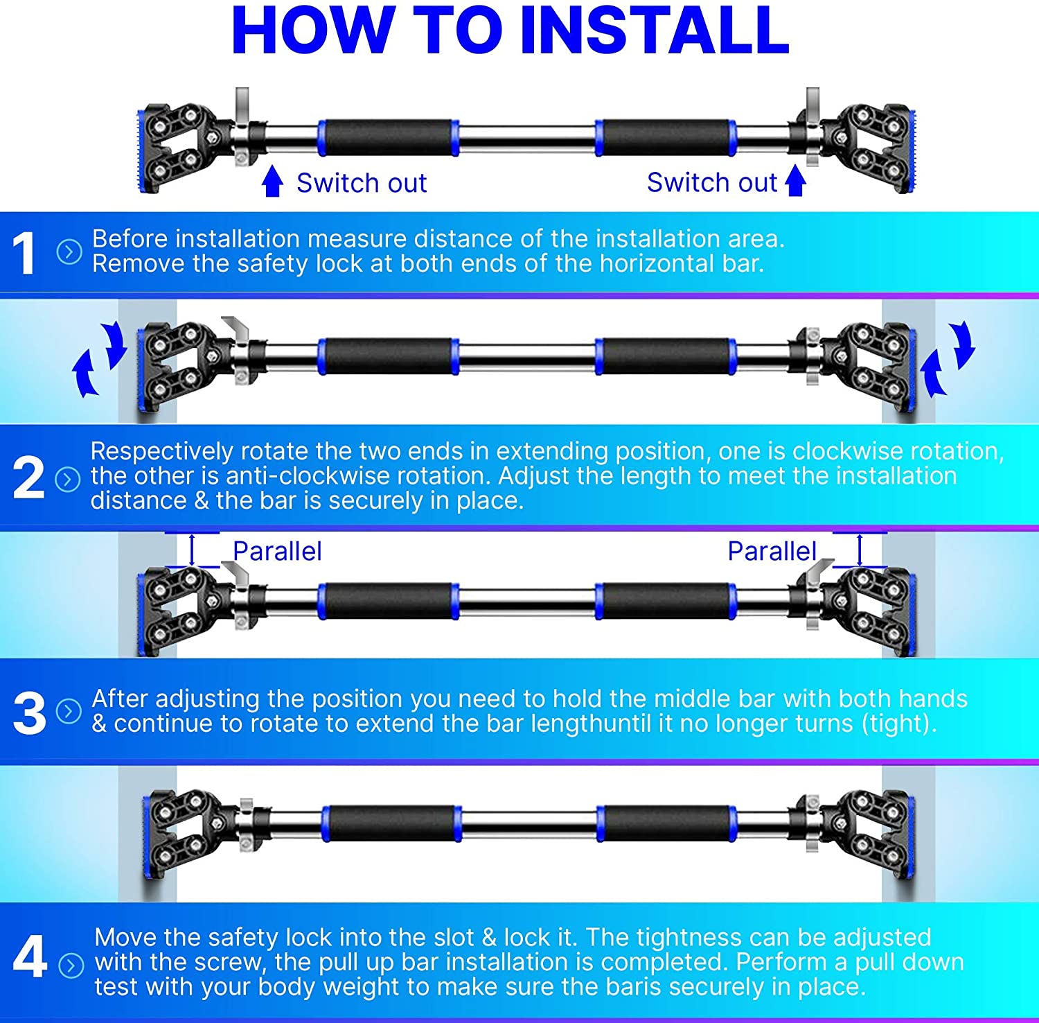 ️Bước 2: Đưa xà đơn lên vị trí lắp đặt, dùng tay vặn sao cho xà đơn ngày càng siết chặt vào tường qua 2 đầu mút