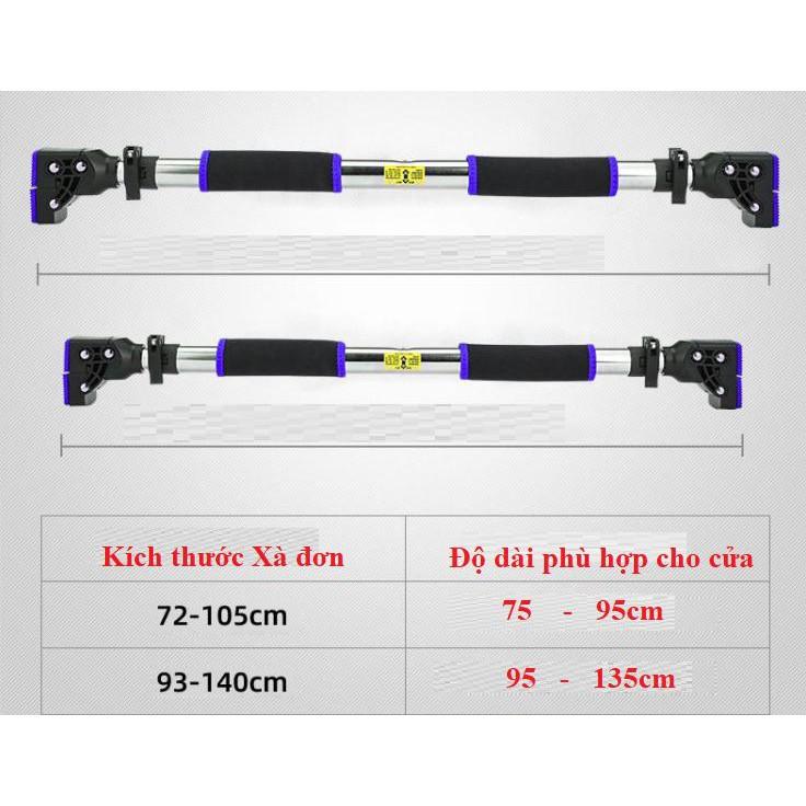 Thông số kỹ thuật Xà đơn treo tường, gắn cửa điều chỉnh 72cm - 105cm và 93cm-140cm nặng 2kg, 2.5kg(tặng găng tay tập xà dày)