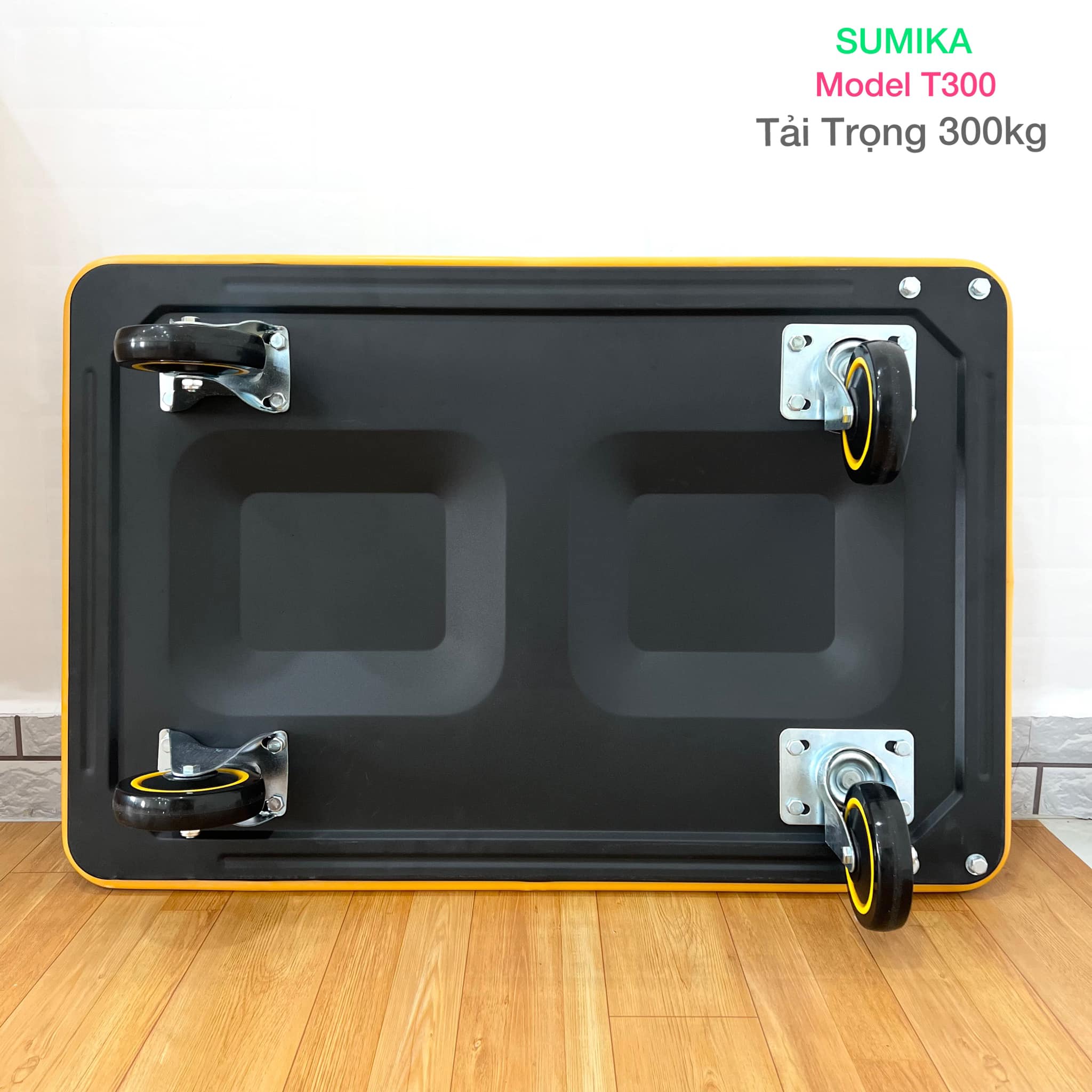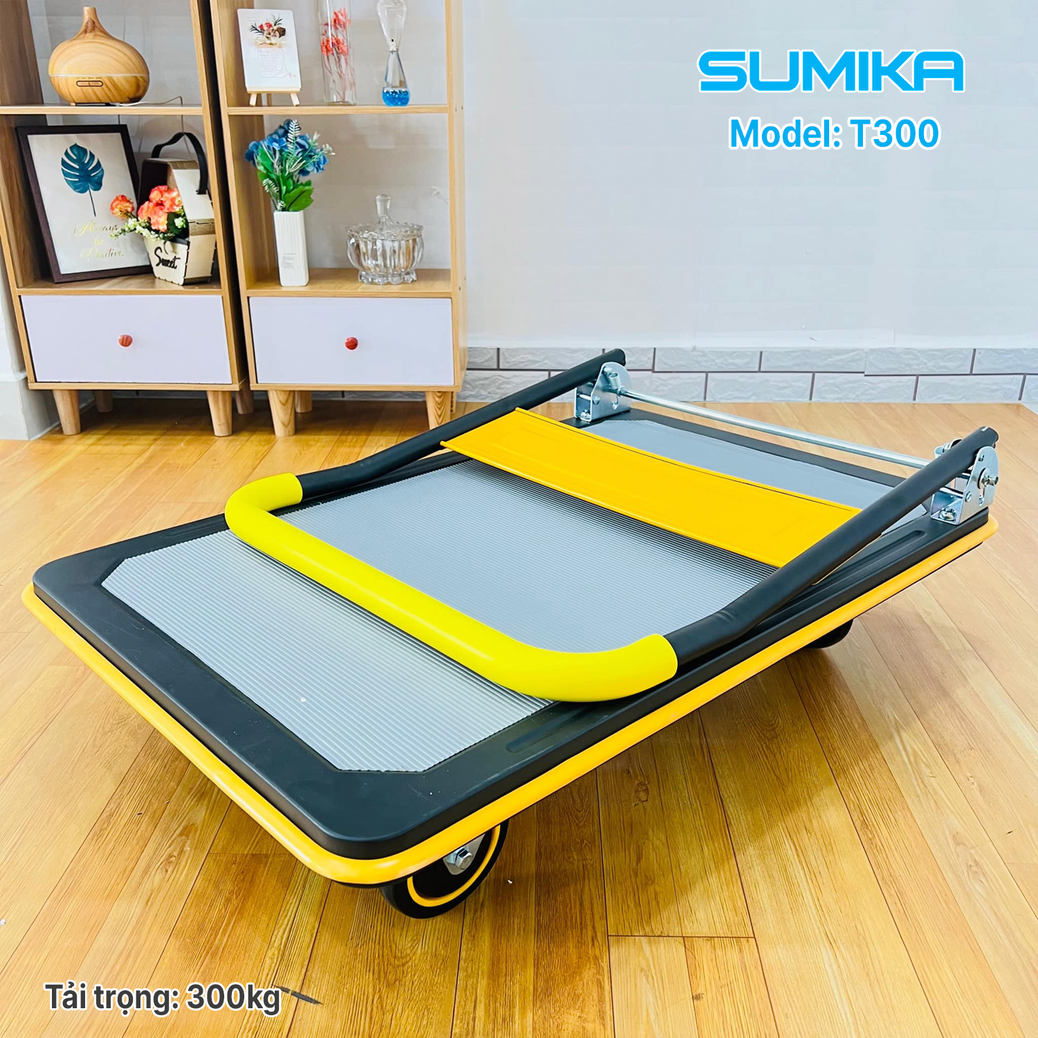 Thông số kỹ thuật Xe đẩy hàng 4 bánh SUMIKA T300 - Khung thép, tay cầm gấp mở tiện lợi, tải trọng 300kg