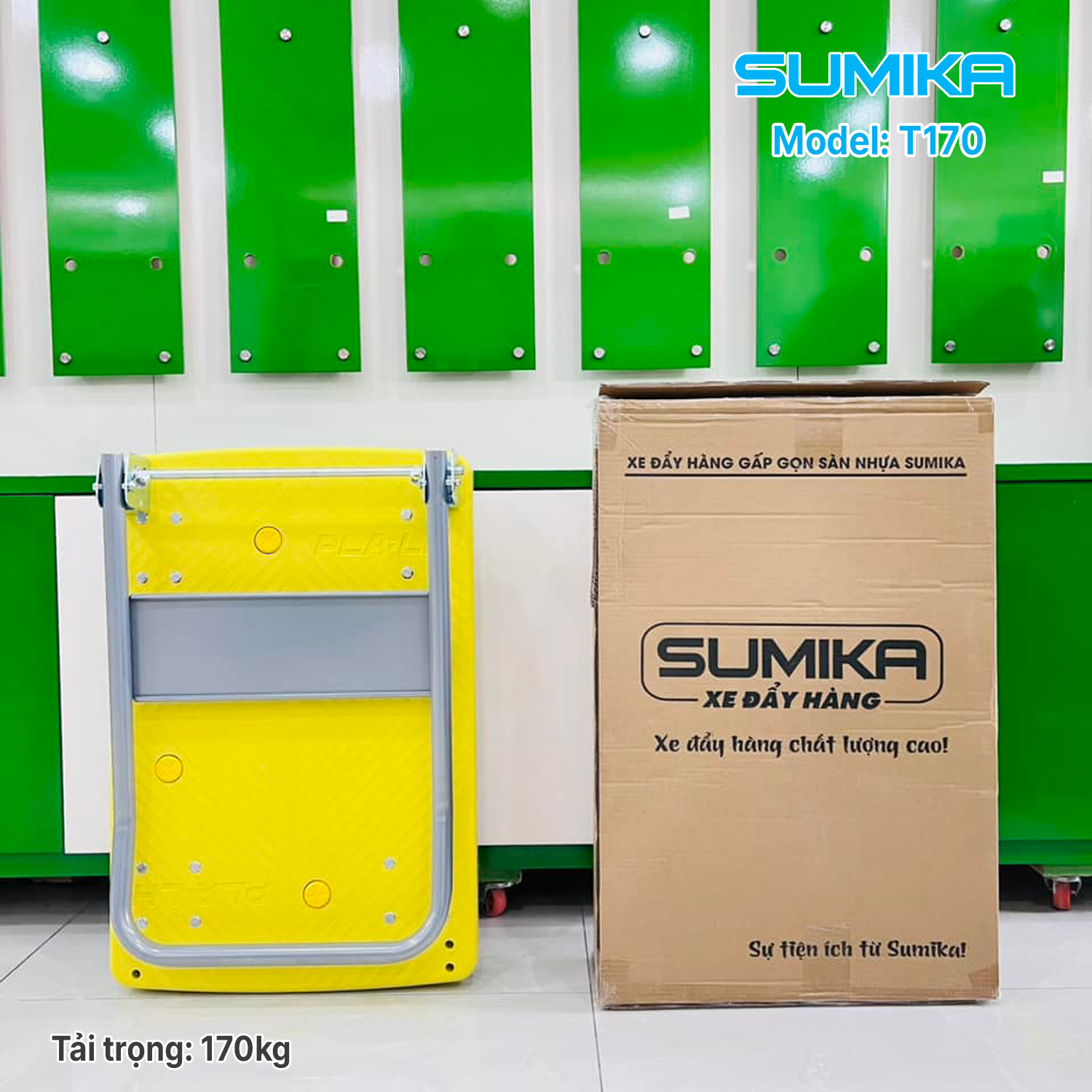 Thông số kỹ thuật Xe đẩy hàng sàn nhựa SUMIKA T170 - Khung thép, tay cầm gấp mở tiện lợi, tải trọng 170kg