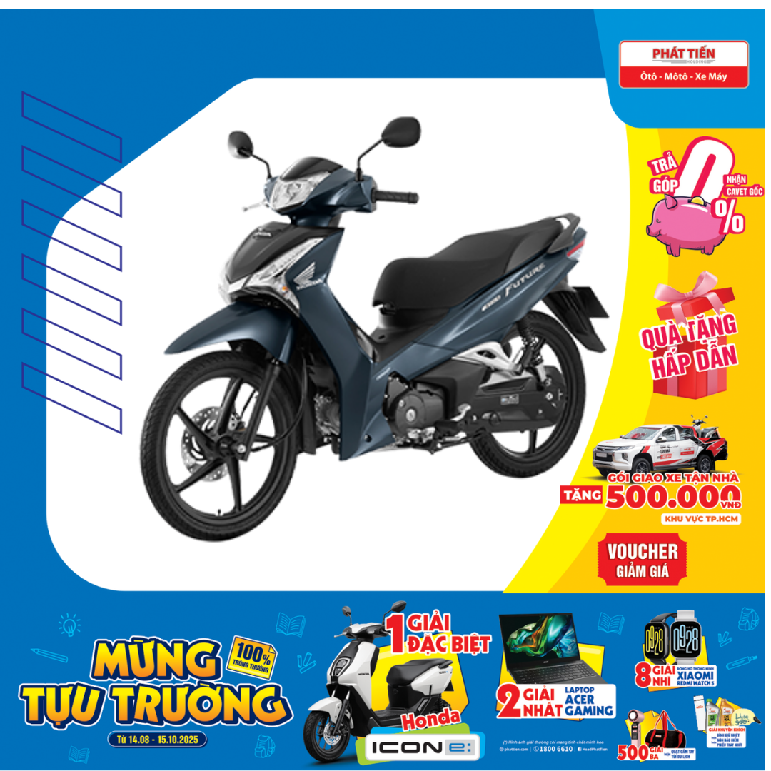 Honda Future 125 FI có thiết kế sang trọng, trẻ trung, lịch lãm và hiện đại với phối màu mới tạo những điểm nhấn ấn tượng, thu hút mọi ánh nhìn. Cùng với vị thế là mẫu xe số cao cấp hàng đầu phân khúc tại Việt Nam, Future 125 FI cho bạn tự tin thể hiện phong cách, phẩm chất của mình trên mọi hành trình.