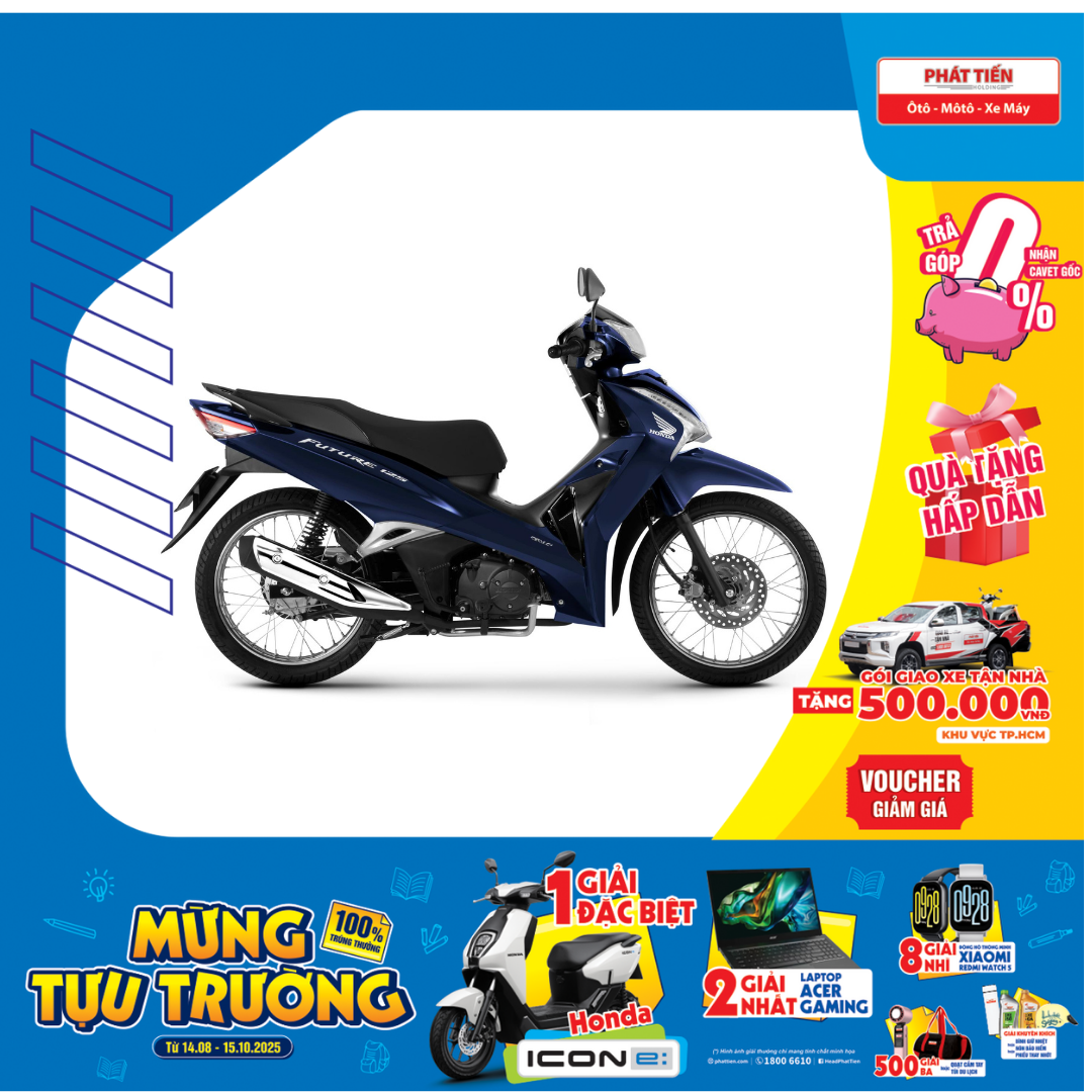 Honda Future 125 FI có thiết kế sang trọng, trẻ trung, lịch lãm và hiện đại với phối màu mới tạo những điểm nhấn ấn tượng, thu hút mọi ánh nhìn. Cùng với vị thế là mẫu xe số cao cấp hàng đầu phân khúc tại Việt Nam, Future 125 FI cho bạn tự tin thể hiện phong cách, phẩm chất của mình trên mọi hành trình.