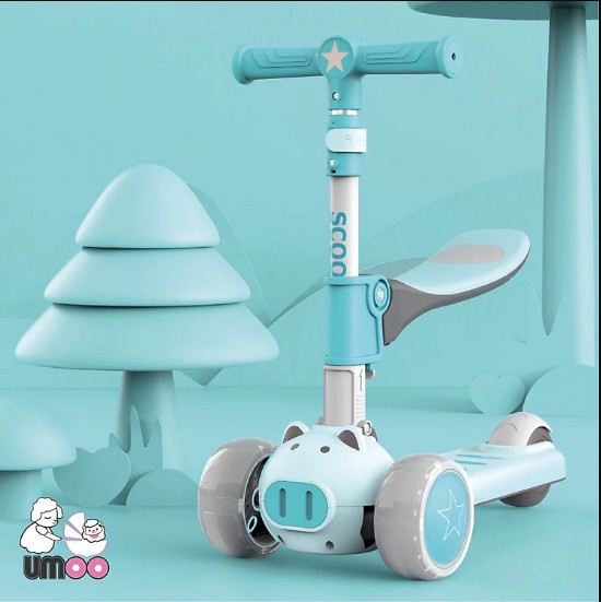 Xe trượt chòi chân Scooter Umoo 3kg cho bé 1-5 tuổi nâng hạ độ cao, bánh xe có đèn phát sáng