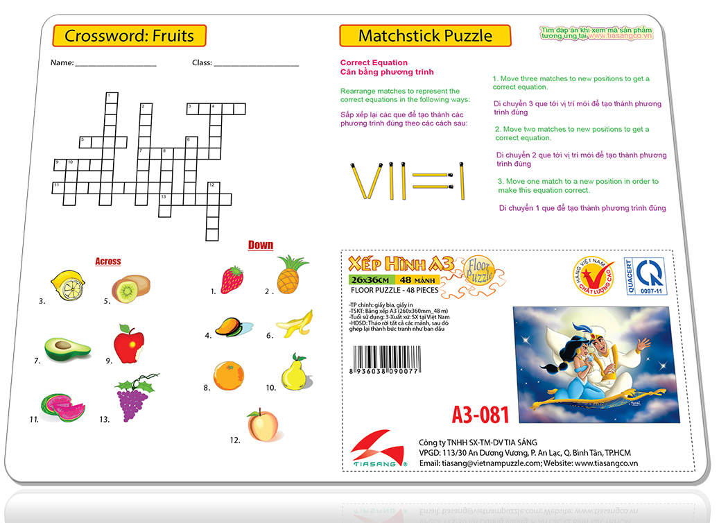 Thông số kỹ thuật Xếp hình Tia Sáng Aladin và cây đèn thần (48 Mảnh Ghép) - Tặng kèm câu đố mặt sau cho bé