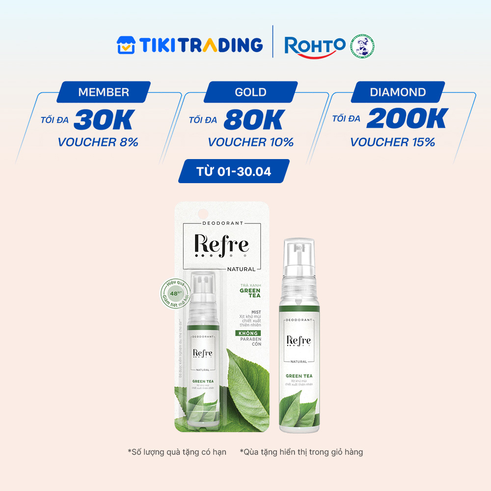 - Xịt khử mùi chiết xuất thiên nhiên Refre Natural với công thức có chứa thành phần chiết xuất từ thiên nhiên giúp khử mùi cơ thể suốt cả ngày và giảm tiết mồ hôi hiệu quả đến 48 giờ.