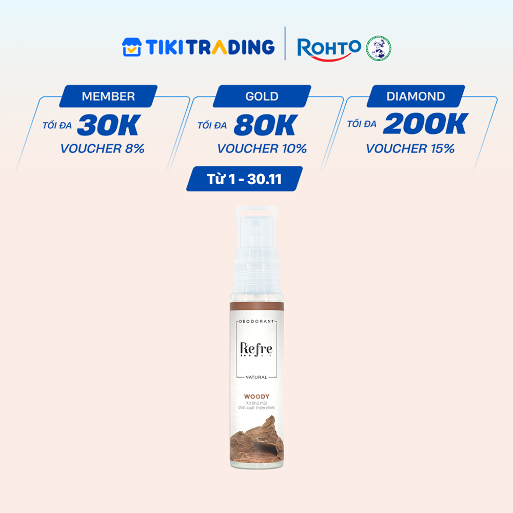 Thông số kỹ thuật Xịt khử mùi chiết xuất thiên nhiên Refre Natural Woody Hương Gỗ 30ml