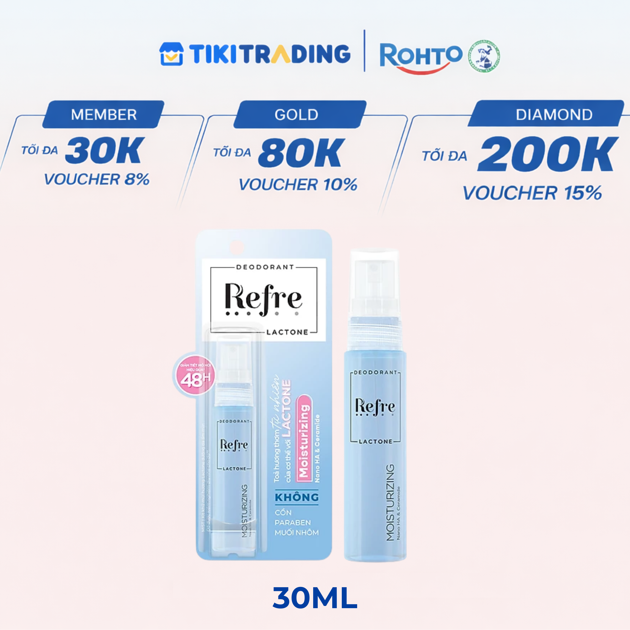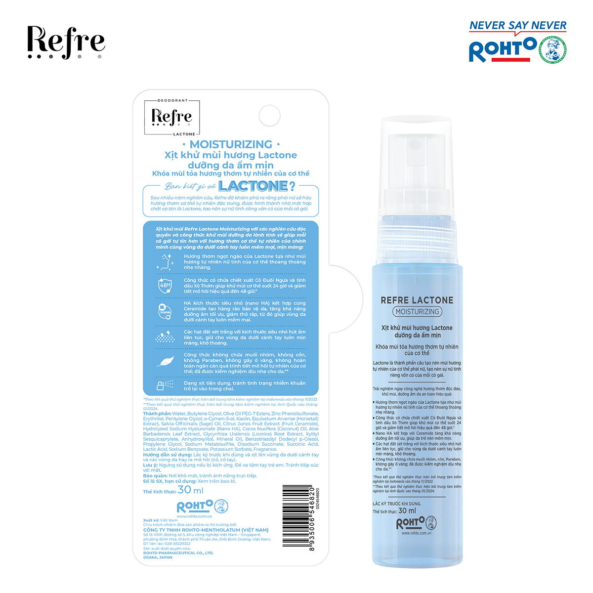 Thông số kỹ thuật Xịt khử mùi, khóa mùi tỏa hương thơm tự nhiên cơ thể Refre Lactone Moisturizing 30ml
