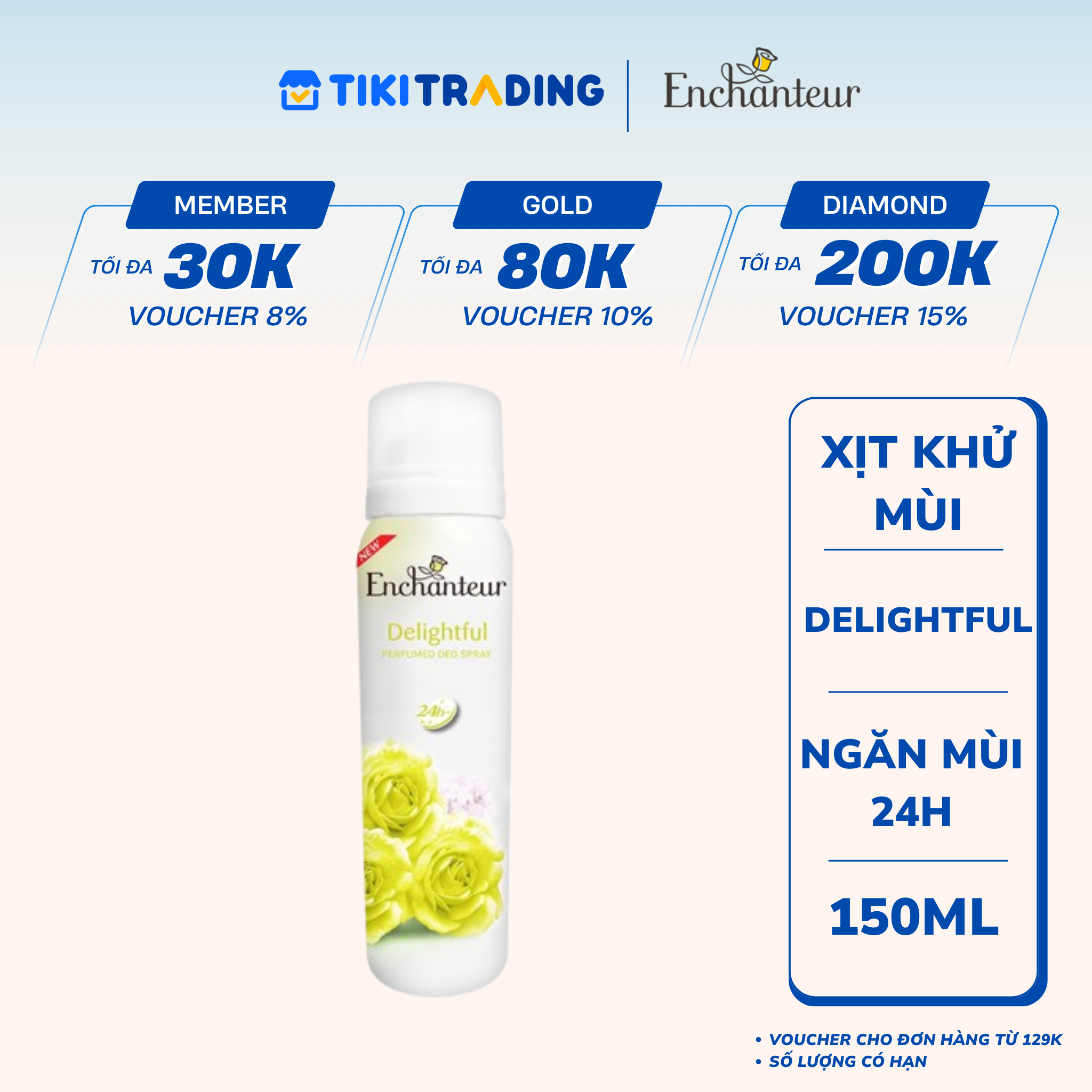 Xịt khử mùi toàn thân Enchanteur Delightful (150ml) không chỉ giúp ngăn mùi cơ thể, tạo cảm giác thoải mái, khô thoáng mà còn mang đến hương thơm ngọt ngào và tươi mát.