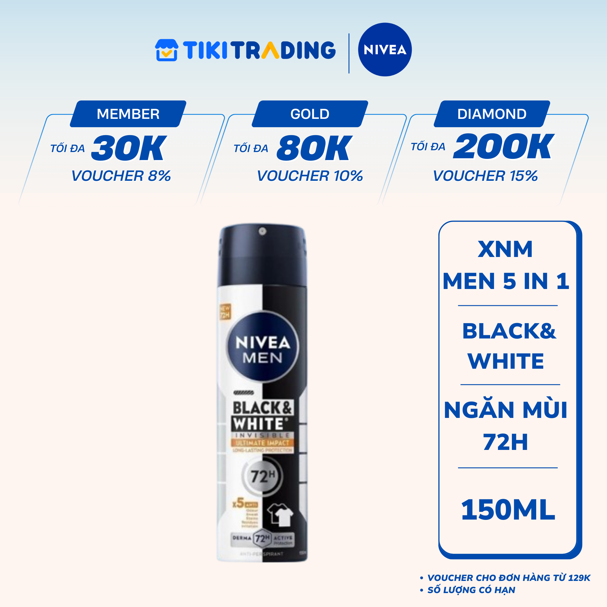 Thông số kỹ thuật Xịt Ngăn Mùi NIVEA MEN Black & White Ngăn Vệt Ố Vàng Vượt Trội 5in1 (150ml) - 85388