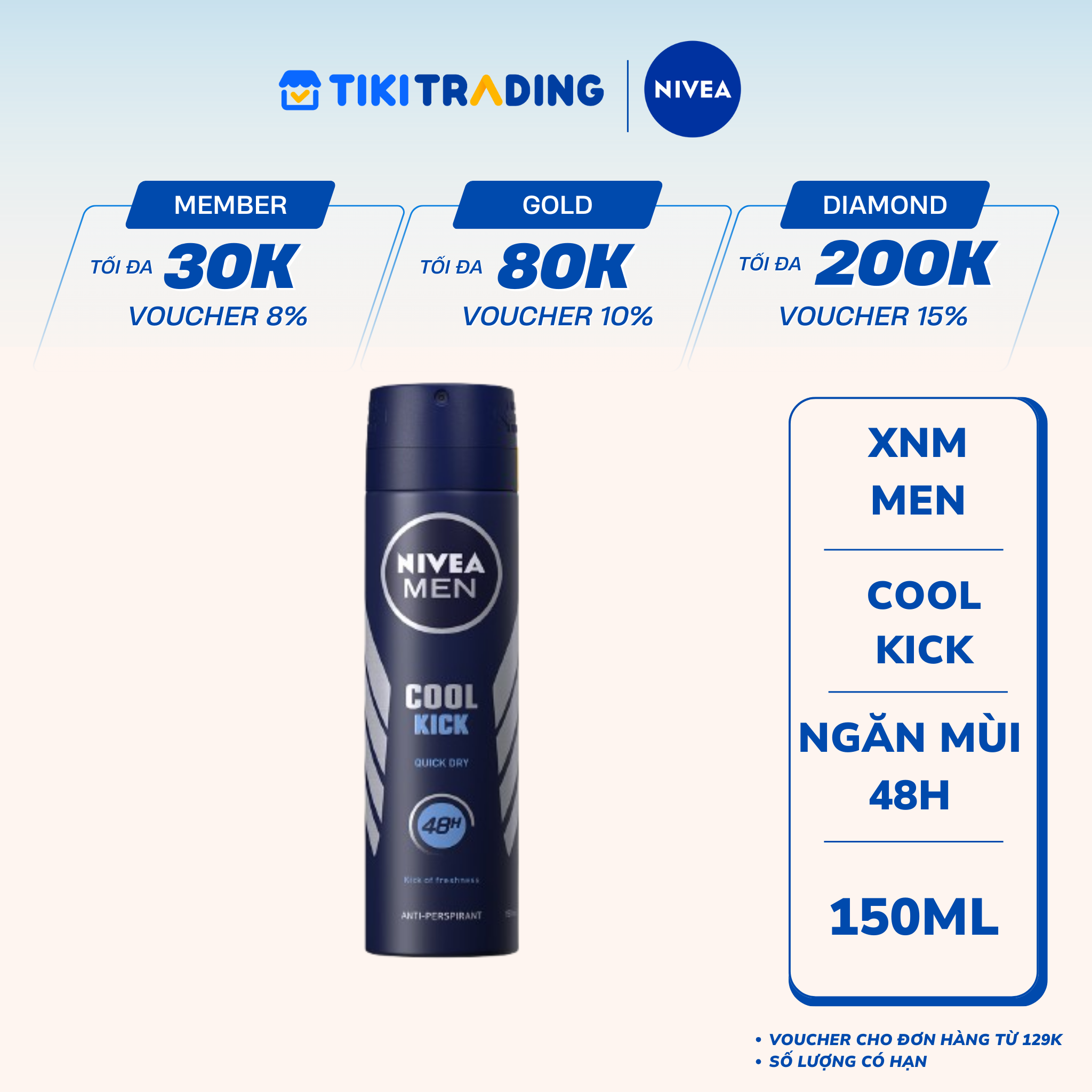Thông số kỹ thuật Xịt Ngăn Mùi NIVEA MEN Cool Kick Mát Lạnh (150ml) - 82883