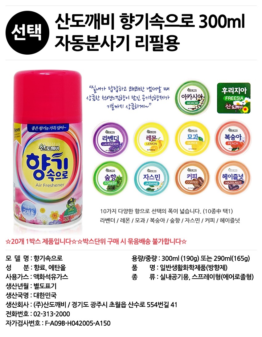 Hoặc sử dụng cùng máy Máy tự động xịt nước hoa thơm phòng SANDOKKAEBI Hàn Quốc
