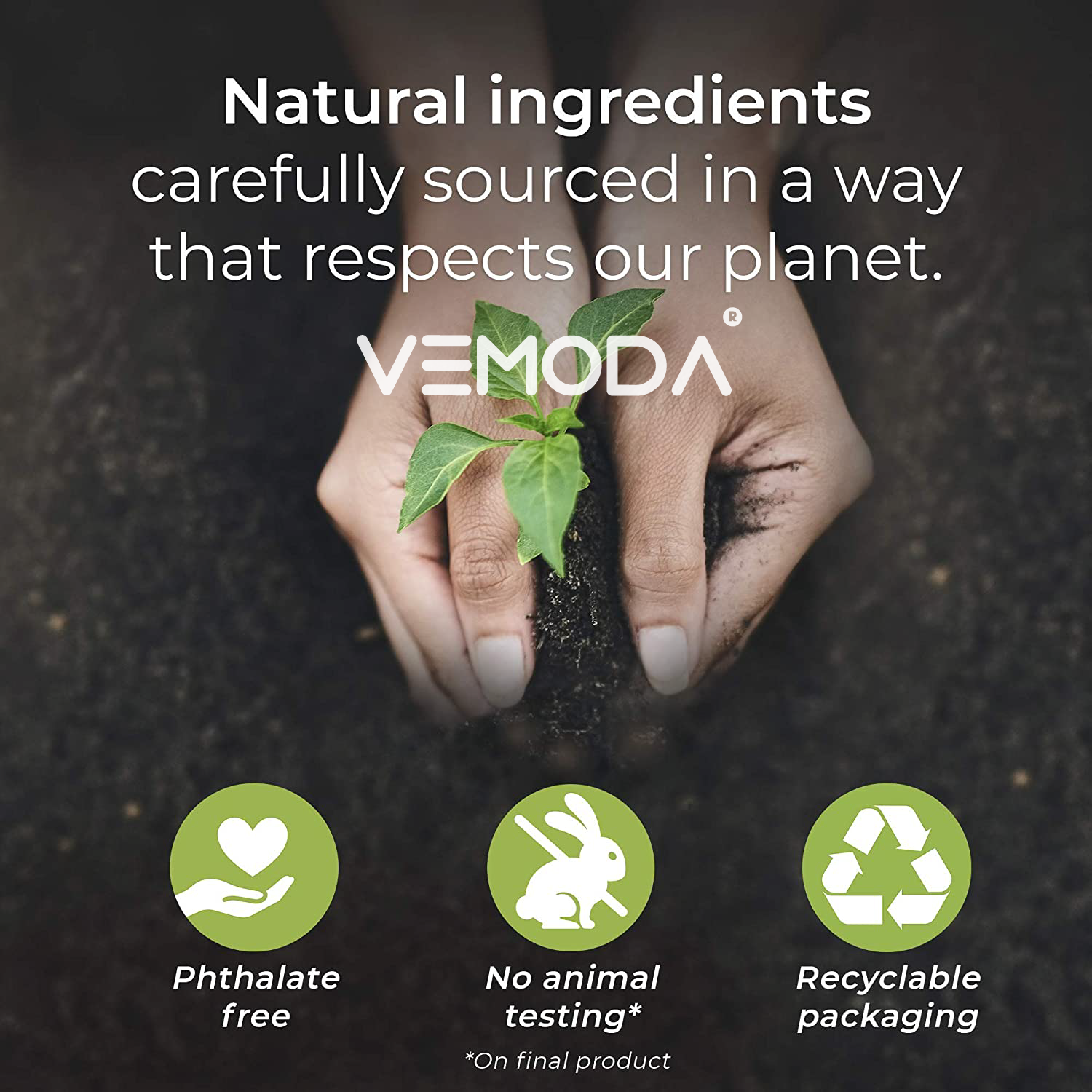 - Sản phẩm kết hợp từ các loại tinh dầu thiên nhiên nguyên chất có công dụng trong việc hỗ trợ xua đuổi muỗi và côn trùng: tinh dầu sả chanh, tinh dầu hương thảo, tinh dầu bạch đàn chanh, tinh dầu vỏ quế,… Với công thức riêng của Vemoda giúp cho sản phẩm có hương thơm dịu nhẹ, dễ chịu nhưng vẫn đảm bảo công dụng khử mùi, hỗ trợ xua đuổi muỗi tuyệt vời cho sản phẩm.