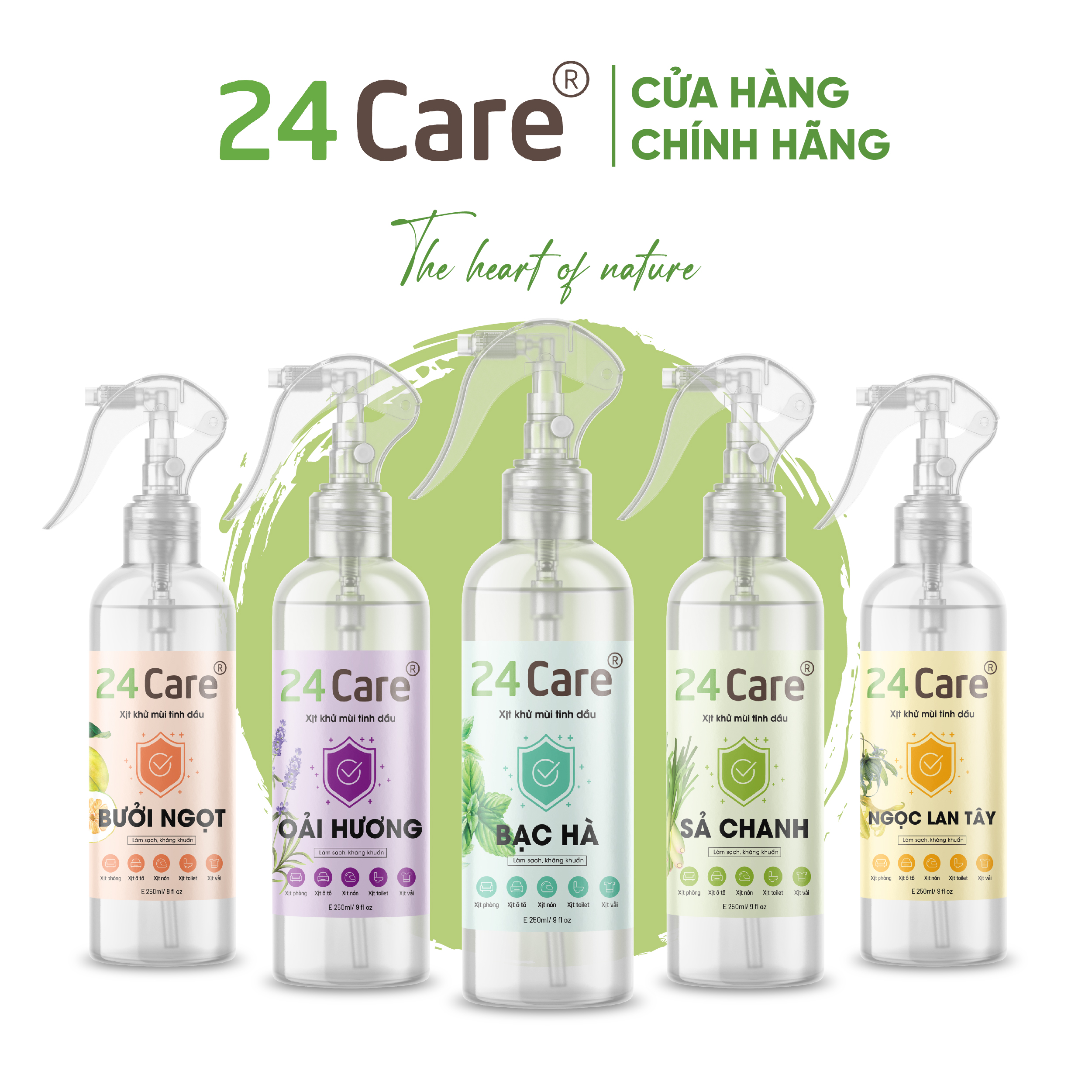 Thông số kỹ thuật Xịt Phòng Tinh Dầu Hữu Cơ Organic 24Care - Kháng khuẩn - Khử mùi hôi - Đuổi muỗi, kiến ba khoan - côn trùng - Hương thơm thư giãn.